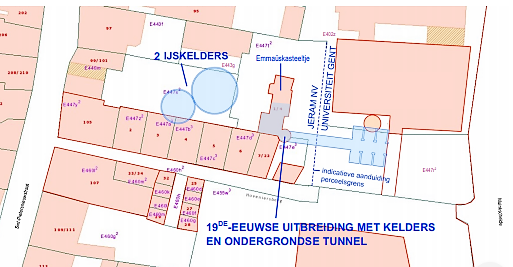 De brouwerij van Donny en zijn echtgenote Baertsoen putte grondwater uit de Blandijnberg voor het productieproces. Voor de koeling van de dranken liet Donny ijs overbrengen uit Scandinavië. Dit ijs werd bewaard in twee gigantische ijskelders van elk meer dan tweeduizend kubieke meter, die hij ondergronds had laten bouwen tussen het kasteeltje en de Sint-Pietersnieuwstraat. De twee ijskelders werden verbonden met → de oever van de Muinkschelde door middel van een tunnel. Ze bevinden zich binnen de hoek gevormd door de Sint-Pietersnieuwstraat en de Hoveniersberg.