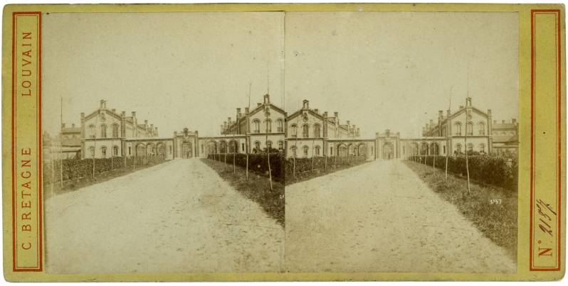 Na verscheidene voorontwerpen werd het uiteindelijke ontwerp van 1852 van architect Adolphe Pauli in samenwerking met en volgens de richtlijnen van professor dr. Guislain zelf, uitgevoerd. De werken, aangevat in 1853, duurden meer dan twintig jaar, tot 1876. Het hospitaal was het eerste echte krankzinnigengesticht in ons land en gold als een modelinrichting. J. Guislain werd de eerste bestuurder van het gesticht dat in 1857 gebruik werd genomen. De ateliers, waaronder een schrijnwerkerij, een smidse, een kleermakersatelier, een weverij, een schoenmakerij, een kledingsmagazijn, een matrassenmakerij en een magazijn werden bijgebouwd rondom de verschillende afdelingen in 1866, volgens een ontwerp van 1863. Een afdeling voor onzindelijken en een hoeve werden respectievelijk links en rechts van de gesloten afdeling der heftigen bijgebouwd in 1875.