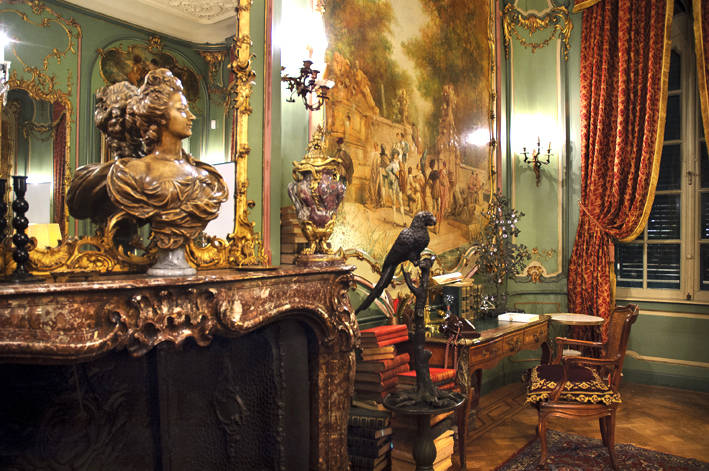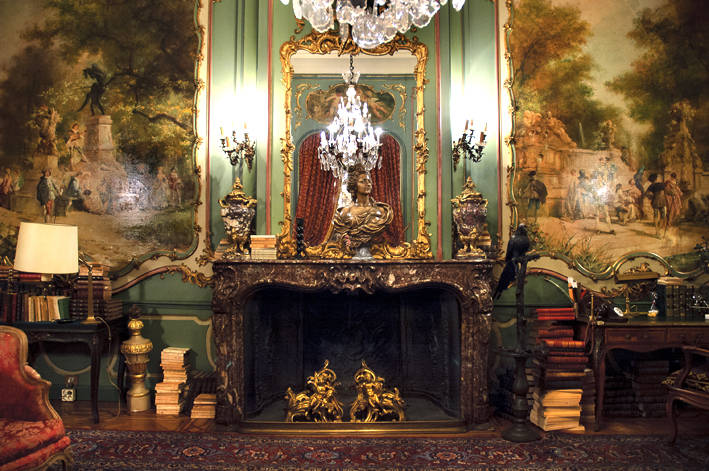 Mobilair: Verrukkelijke interieurs onder meer een marmeren trapzaal met smeedijzeren trapleuning en verschillende salons met merkwaardige lambriseringen, parketvloeren, stucplafonds, spiegels op de schouwen en talrijke schilderingen van niet bekende 18de-eeuwse kunstenaars, vermoedelijk ook van P.N. Van Reysschoot (1738-1795) en in het salon Falligan door A. Heins (1887); dit alles in een Frans-getinte rococostijl.