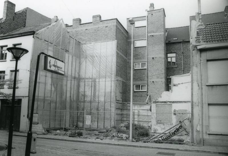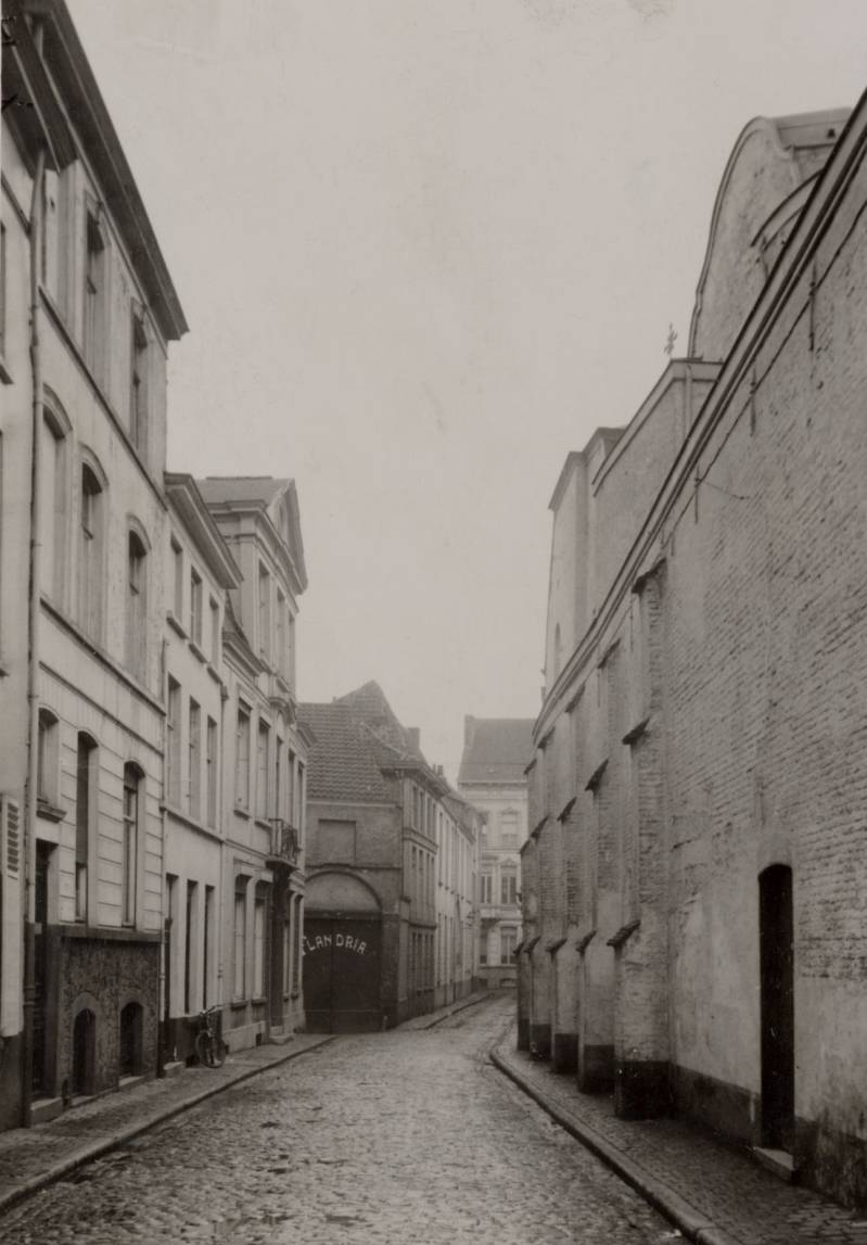 Door bestendig geldgebrek was het de kloosterlingen ook onmogelijk hun armzalig ingerichte kapel te vernieuwen. Ze moesten cent op cent leggen vooraleer ze eindelijk in 1754 op de hoek van de Ridderstraat en de Baaisteeg een kerkje konden laten oprichten. Meer en meer arme leerlingen kwamen de lessen volgen, men kreeg een nijpend gebrek aan plaats. De stad drong er bij de nationale regering op aan de religieuzen ruimere leslokalen ter beschikking te stellen. Ze toonde aan dat door de krappe behuizing verschillende welstellende families uit Gent hun kinderen naar de veel modemere kostscholen in Frankrijk stuurden. Met de dekreten van 18 maart en 24 april1783 schafte Jozef 11 heel wat kloosters af. Meestal ging het om contemplatieve orden. De Ursulinen werden als nuttig beschouwd en kregen de beschikking over de gebouwen van het afgeschafte klooster van Galilee in de Hoog- en Holstraat (schuin over de huidige Dominicanenkerk). Het beluik in de Ridderstraat verviel onder staatsdomein in 1786. Nog hetzelfde jaar kreeg de stad de toelating het oude klooster te gebruiken als wachthuis voor de vier hoofdgilden. Tijdens de Brabantse Omwenteling kende men een gedeelte der lokalen toe aan het "Korps Vrijwillige Ruiters". Dit korps uit 120 manschappen bestaande richtte er zijn hoofdwacht in. De rest van de plaatsen gebruikte men als logement voor voorbijtrekkende troepen. Bij de terugkeer der Oostenrijkers namen de "Stadswaekende mannen" er hun intrek. Op 13 januari 1797 verkocht de Staat een groot stuk van het pand gelegen langs de Ursulinenstraat. Een voorwaarde bij de verkoop was de Baaisteeg, ook Nagelstraatje genoemd, te verbreden. De kopers veranderden de gebouwen in woonhuizen die werden verhuurd. Tijdens het Frans Bewind namen de ordediensten een grote uitbreiding. Ook de Gentse "Gendarmerie" zocht een ruimere behuizing. In 1806 kregen ze de toestemming hun intrek te nemen in de overblijvende ruimten van het Ursulinenklooster. Het ganse complex had zeer geleden onder de bezetting van de verschillende groepen militairen. De hoogstnodige herstellingen werden uitgevoerd. Het was eerst in 1820, onder de Hollanders, dat men de aanpassing aan de noden van de gerechtelijke dienst grondig aanvatte. Het bestek "voor de aenneming der leveringen en handgedaed voor de te doene werken in de kaseme der Maréchaussée binnen de stad ... " werd begroot op 17.020 gulden. Zeven aannemers deden een bod tussen 16.079 en 13.396 gulden. Het was André Van Den Abeele, bouwmeester uit Gent die de toewijzing kreeg. De werken begonnen in augustus 1820 en duurden een vol jaar. Alles werd afgebroken en nieuw gebouwd. Alleen de buitenmuur met hoofdingangspoort in de Ridderstraat bleef behouden. Op 7 september 1821 had graaf de Murat, kapitein, kommandant van de kompagnie Maréchaussée van de Provincie Oost-Vlaanderen, de eer schepen Charles Kervijn Volkersbeke vergezeld van de stedelijke architekt De Broe en de direkteur van de kazernering Etienne Besat in de nieuwe kazerne te ontvangen. Na de rondleiding werd een gedetailleerd procesverbaal van overname opgesteld dat door bovenstaanden werd ondertekend. Na de omwenteling in 1830 veranderde de naam boven de ingangspoort in "Gendarmerie Nationale". In die tijd stond de overheid erop dat, indien mogelijk, de rijkswachtersgezinnen in de kazerne of in het kwartier moesten wonen. Om die reden werden de huizen in de Baai- enErpelsteeg en in de Ursulinenstraat, gebouwd na de verkoop in 1797, van zohaast ze vrij kwamen door de Stad of Staat teruggekocht. Het duurde nog tot 1959 vooraleer alle woningen waren teruggewonnen. Elvina Leysen en Paula Verstraeten waren de laatste eigenaars die onteigend werden. De andere twaalf woonhuizen waarin rijkswachterfamilies verbleven palmde men één voor één in voor de dienst. In 1958 bleef alleen de brigadekommandant nog in de kazerne wonen. In 1962 verklaarde de Stad de huizen in deErpelsteeg tot krotwoningen. Na afbraak bouwde mengaragen in de plaats. (Afb 4) Niettegenstaande alle aanpassingen barstte de kazerne uit haar voegen en moest naar nieuwe of grotere huisvesting worden uitgekeken. Reeds vóór de laatste oorlog sprak men over een nieuwe kazerne in de Ridderstraat zelf, op het Koersplein te St.-Amandsberg, op de Drongensesteenweg, op de Martelaarslaan, de Nieuwe Wandeling, de St-Lievenslaan en op nog andere plaatsen. Tot in 1964 gedacht werd aan het terrein van de 1e Mobiele Groep aan de Groendreef en Lijsterstraat. Het voorstel viel in goede aarde maar het duurde nog tot 1970 vooraleer de plannen door alle ministeriële diensten waren goedgekeurd en getekend. Men bouwde drie jaar aan het zeven verdiepingen hoge gebouw. In 1973 kwamen dan de diensten van het Gebied Oost- en West-Vlaanderen deze van de Territoriale Groep Oost-Vlaanderen, waaronder de Wegpolitie (zwaantjes) en de diensten Multanova en Verkeerspark de lokalen betrekken. Ondertussen had men van hogerhand besloten de Rijkswachtbrigade Gent en de diensten van de Opsporingsbrigade (B.O.B.) in het stadscentrum te houden. Niettegenstaande de Stad en ook enkele private personen en firmas geïnteresseerd waren in het terrein in de Ridderstraat bleef de kazerne bestaan. De in het oude kwartier gebleven diensten hadden nu meer armslag en richtten zich ruimer in. De huizen in de Ursulinenstraat iJJ. bouwvallige toestand en nu overbodig geworden werden in 1977 gesloopt. (Afb 5) Langzamerhand is men nu bezig de overgebleven gebouwen te modernizeren. U wil hoogstwaarschijnlijk nog weten hoe de toekomst van de oude kazerne eruit ziet? Er zijn volgens onze inlichtingen nog enkele veranderingen te verwachten; aanpassing van de lokalen aan de moderne tijd. Afbraak van de muur langs de Erpelsteeg die de Stad wil verbreden tot 6 meter. Overbrenging van de hoofdingang naar de Ursulinenstraat. Andere veranderingen laten we aan uw nieuwsgierigheid over. Ga in de volgende jaren maar eens kijken hoe "De Rijkswacht. .. Uw Vriend" verder wordt gehuisvest. Terwijl U dan toch in de Ridderstr