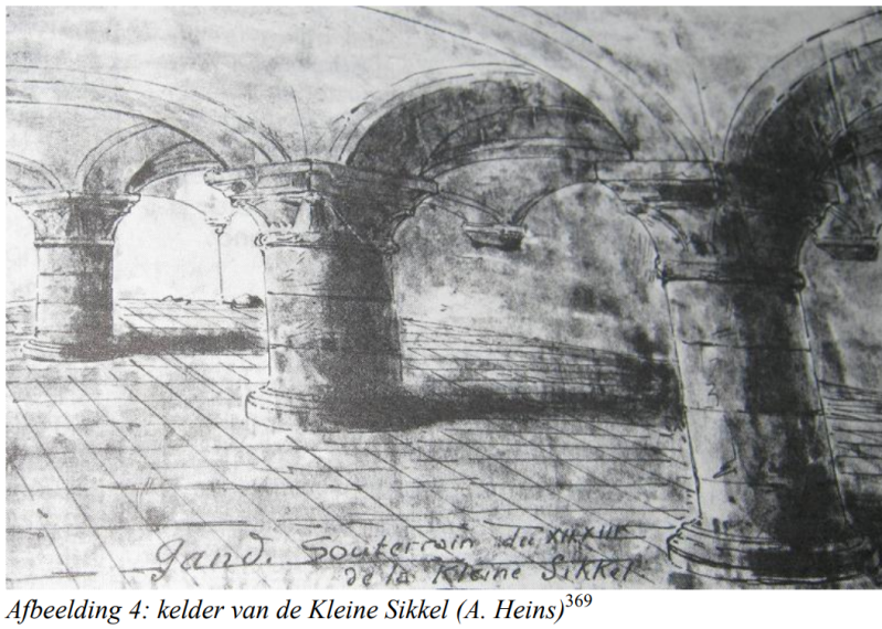 Romaanse patriciërswoning zogenaamd "de Kleine Sikkel" naar de familie Van der Zickelen die dit steen bezat in de 14de eeuw. Naast de voorgevel die in 1912 in zijn oorspronkelijke staat hersteld werd, is van dit karakteristiek Gents burgerhuis uit begin 13de eeuw enkel de merkwaardige overwelfde kelder op zijn zware romaanse zuilen bewaard gebleven.