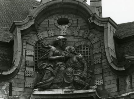 De vorst, door dit voorval aangegrepen, liet onmiddellijk Cimon vrij en gaf opdracht boven de toegangspoort een kunstwerk te plaatsen als blijvend aandenken aan deze gebeurtenis.Deze oude cipierswoning gaf toegang tot de stadsgevangenis.