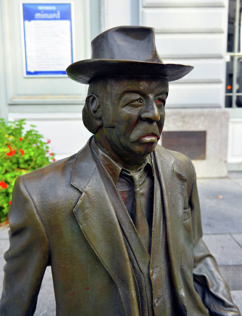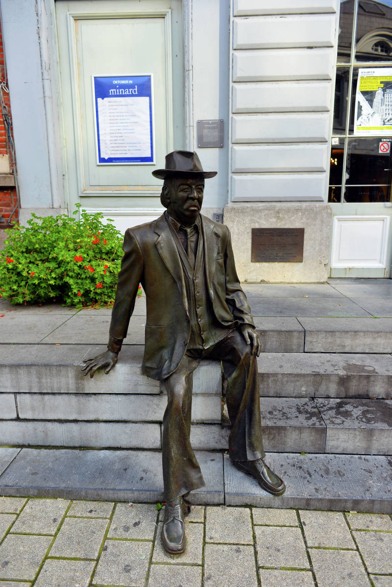 De voorgevel is in neoclassicistische stijl. Op de trappen voor de Minard zit een standbeeld van Vlaams acteur en conferencier Romain Deconinck, die de Minard als thuisbasis had voor zijn gezelschap Romain Deconinck en zijn beren en naast de schouwburg met de Marimain een theatercafé had.