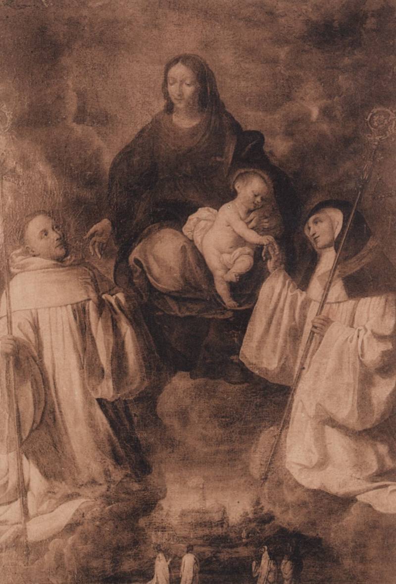 De kloostergang uit de 17de eeuw werd in de 18de eeuw grotendeels herbouwd. De twee kloosterpanden die uitzien op de rechthoekige binnentuin, de westvleugel, de zuidvleugel tot de aanzet van de oostvleugel en de zes eerste traveeën van de oostvleugel werden naar ontwerp van architect Bernard De Wilde in 1733 verbouwd; het verlengde van de zuidvleugel in 1758. De verbinding tussen de oostvleugel en het koor van de kapel kwam slechts in tweede helft 19de eeuw tot stand. Tot dan was de binnenkoer van het klooster niet volledig gesloten. Westelijke buitengevel met zes traveeën en twee bouwlagen, met zadeldak (leien) voorzien van twee kleine en een grotere dakkapel. Verankerde en witgeschilderde bakstenen lijstgevel, gedateerd 1654 op twee grote vierkante gesculpteerde gevelstenen. Steekboogvormige benedenvensters en deur in vlakke omlijstingen met gebogen druiplijst.