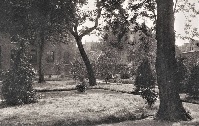 Erachter, grote mooi aangelegde tuin (vroegere meersen) met vijver, in het westen begrensd door een hoge bakstenen muur met steunberen, mogelijk de oude begrenzingsmuur van het Prinsenhof, heden scheiding met het klooster van de arme klaren (Sint-Elisabethplein). In de noordwesthoek, poortje en toegang tot het kluishofje en barokke kluis. Resterende gebouwen van het zogenaamde "Leeuwenhof" in noordoosthoek. achter de huizenrij van het Prinsenhof.