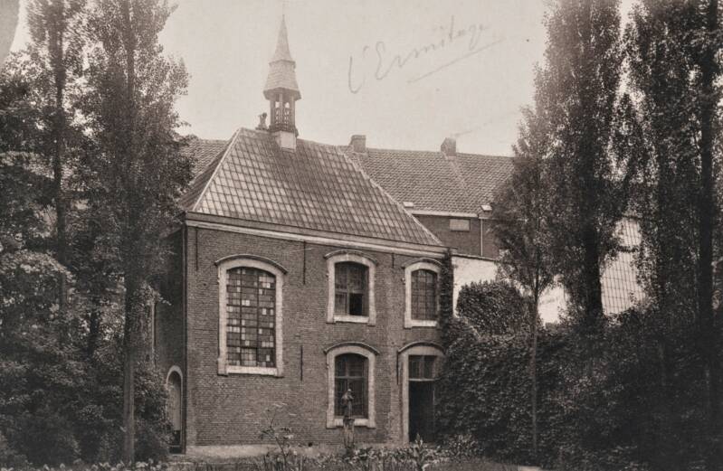 Kerk en klooster van de ongeschoeide karmelieten of discalsen. Sinds 1272 orde der geschoeide karmelieten gevestigd in de Lange Steenstraat waar een bloeiende gemeenschap ontstond. Begin 17de eeuw pas, pogingen van de hervormde of ongeschoeide karmelieten om zich in de stad te vestigen wegens een gebrek aan strengheid en tucht bij de overige karmelieten. Eerst in 1640 toestemming van de Sint-Pietersabdij te verblijven in de kapel en kluis van Sint-Quinten, grenzend aan de abdij. In 1648, bevestiging van bisschop A. Triest en het Hof van Brussel zich binnen de stad te vestigen, ondanks groot verzet van de bestaande bedelorden.
