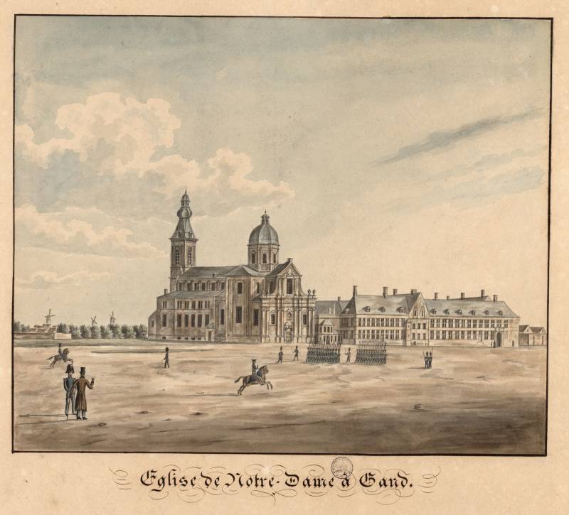 In de onmiddellijke buurt van de abdij bestond reeds een Onze-Lieve-Vrouwekerk die de parochie bediende. Toen Gent te maken kreeg met de Franse Revolutie en confiscatie werd de parochiekerk toegewijd aan Onze-Lieve-Vrouw in 1799 afgebroken. De Sint-Pietersabdijkerk ontsnapte aan verwoesting door de interventie van de Gentenaar Karel van Hulthem. Het Concordaat van 15 juli 1801 gaf een deel van de abdijkerk terug aan de katholieke eredienst en daarna kon de abdijkerk ook als parochiekerk functioneren onder de dubbele naam Onze-Lieve-Vrouw Sint-Pieters.