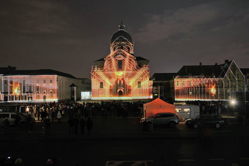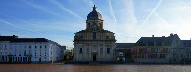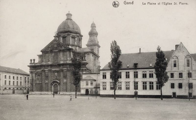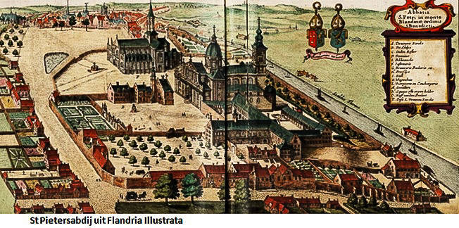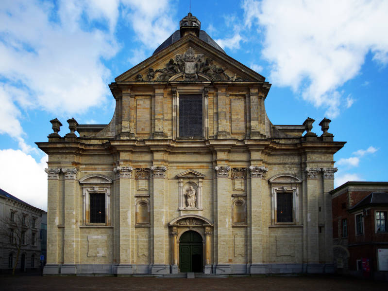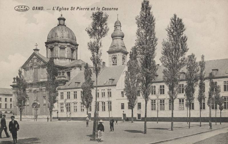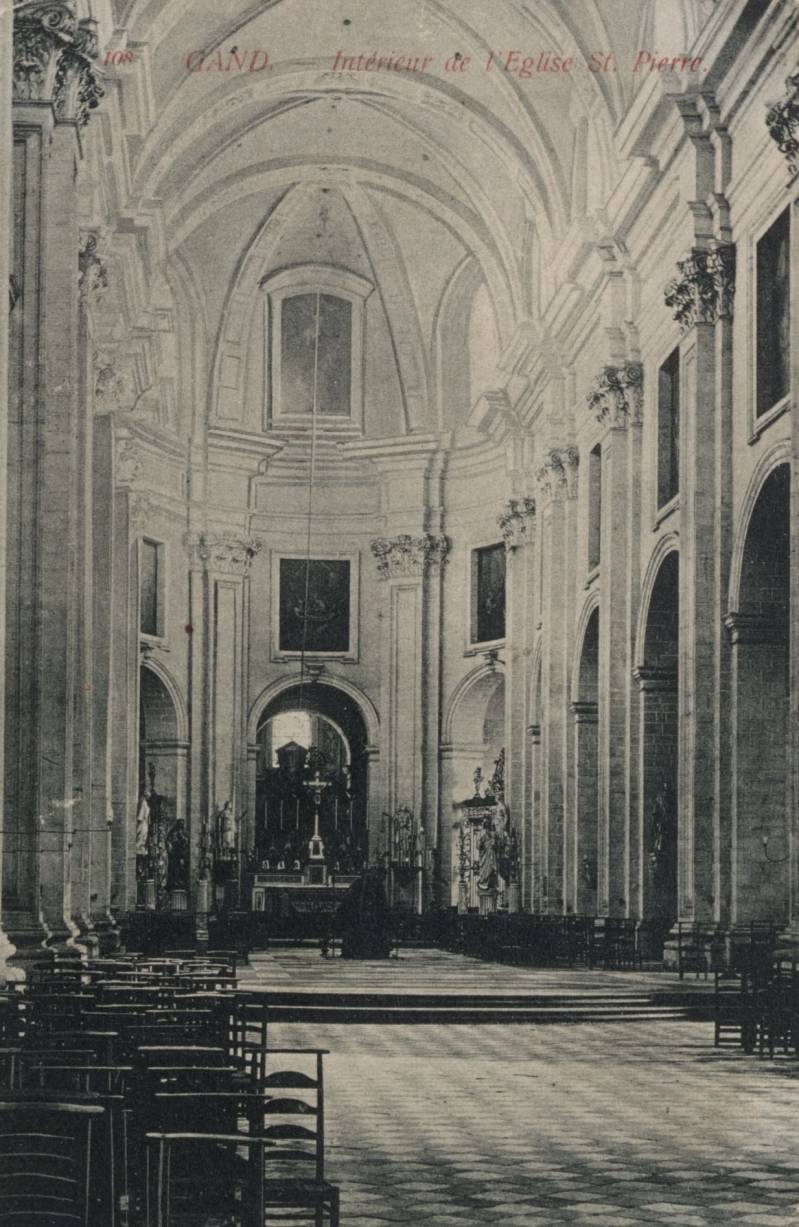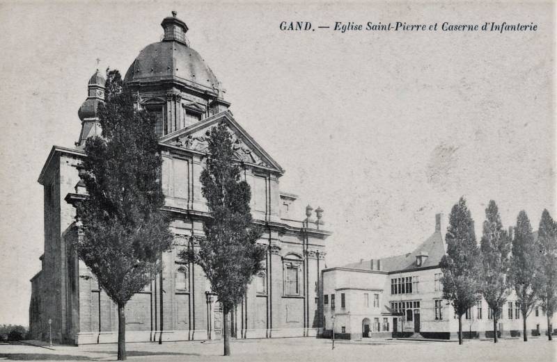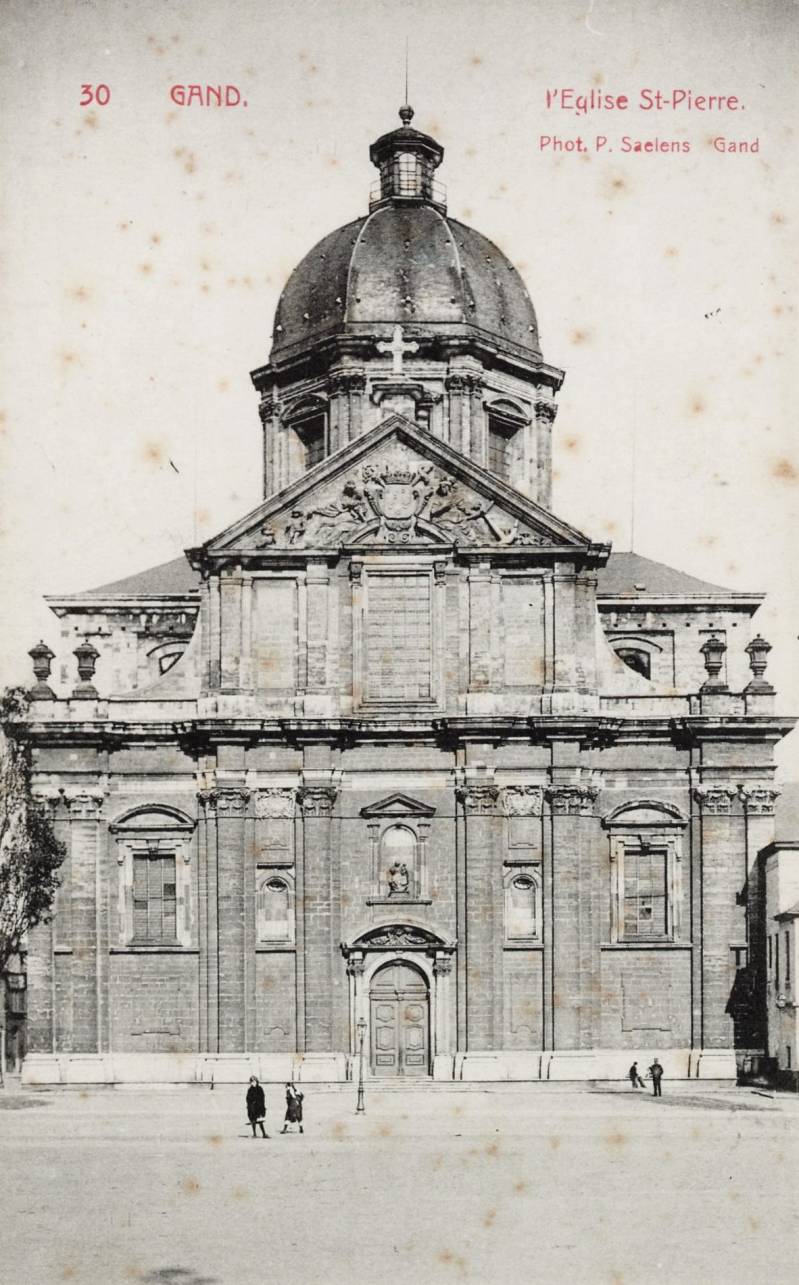 De oorspronkelijke Sint-Pietersabdijkerk in romaanse stijl werd in de 12e-13e eeuw gebouwd. Tussen 1629 en 1651 ontstond een barokke kerk naar ontwerp van de jezuïet Pieter Huyssens, met de steun van de aartshertogen Albrecht en Isabella. Het gebouw werd opgetrokken in zandsteen uit Balegem en Frankrijk.