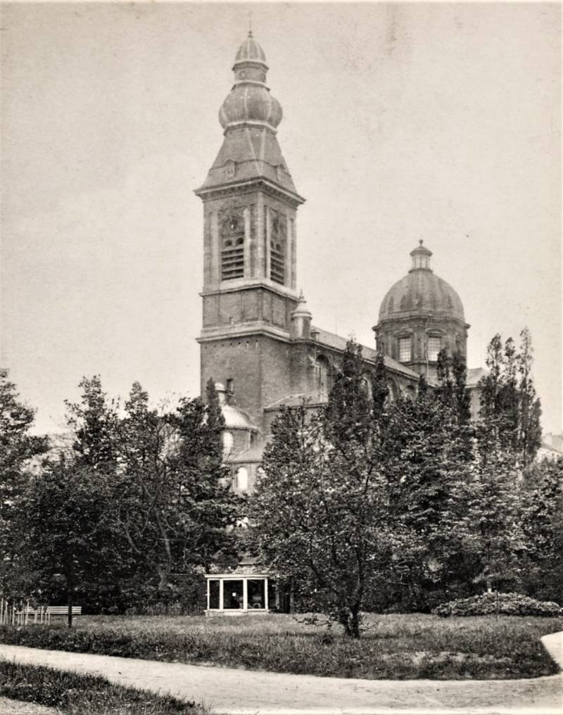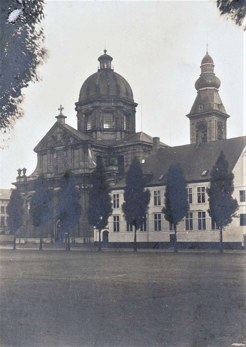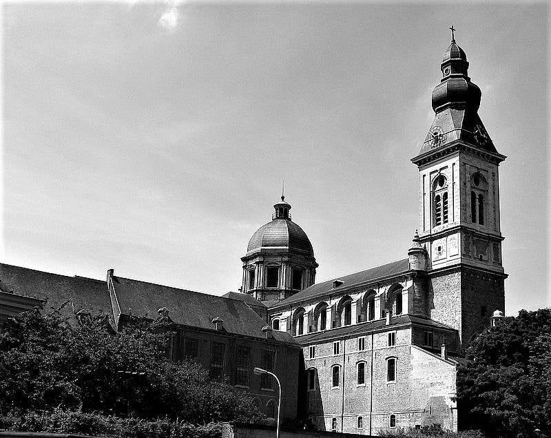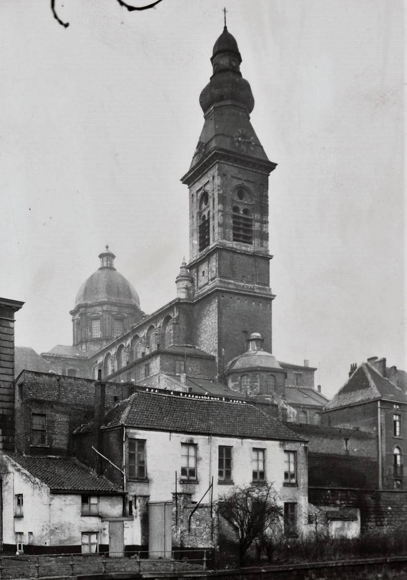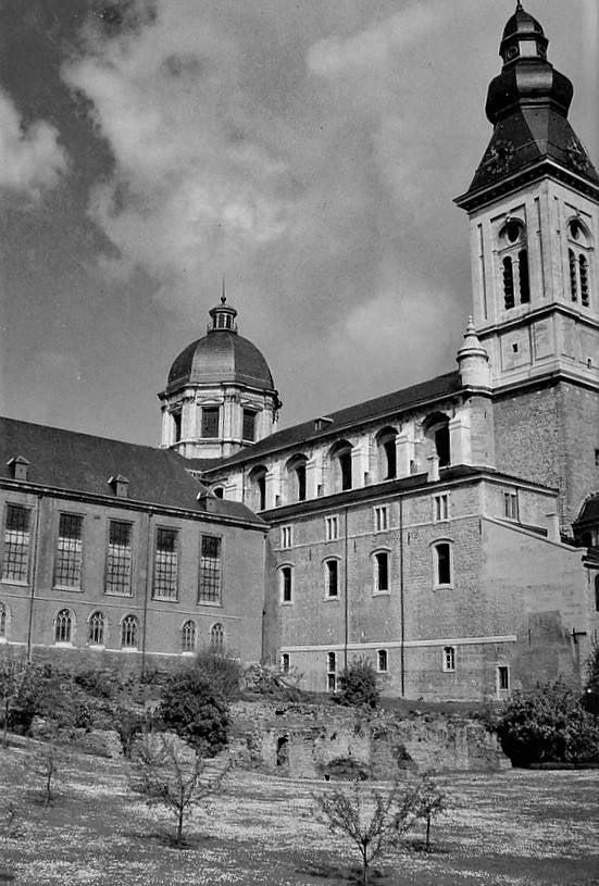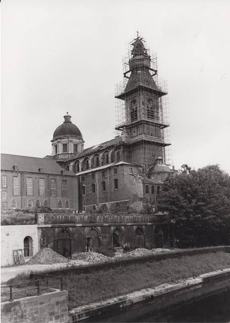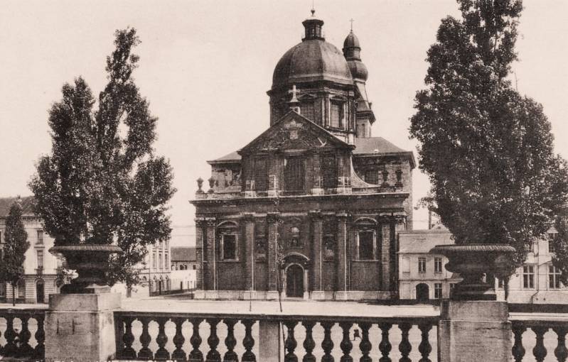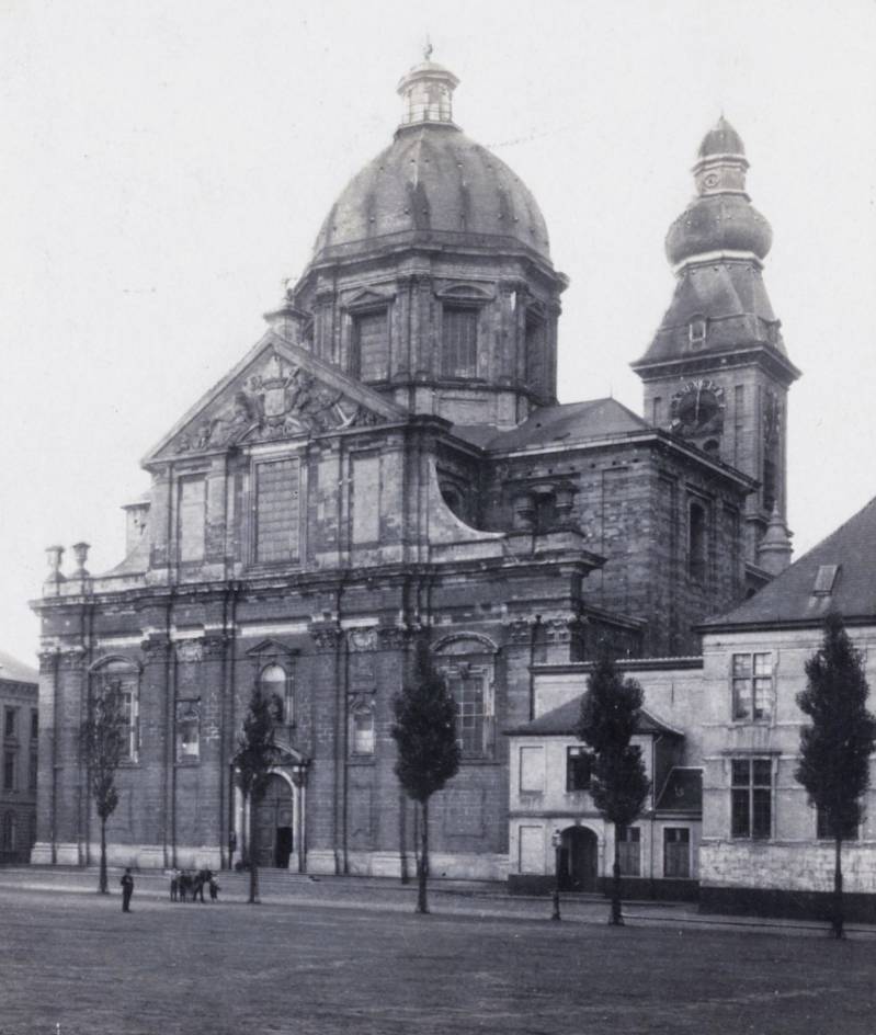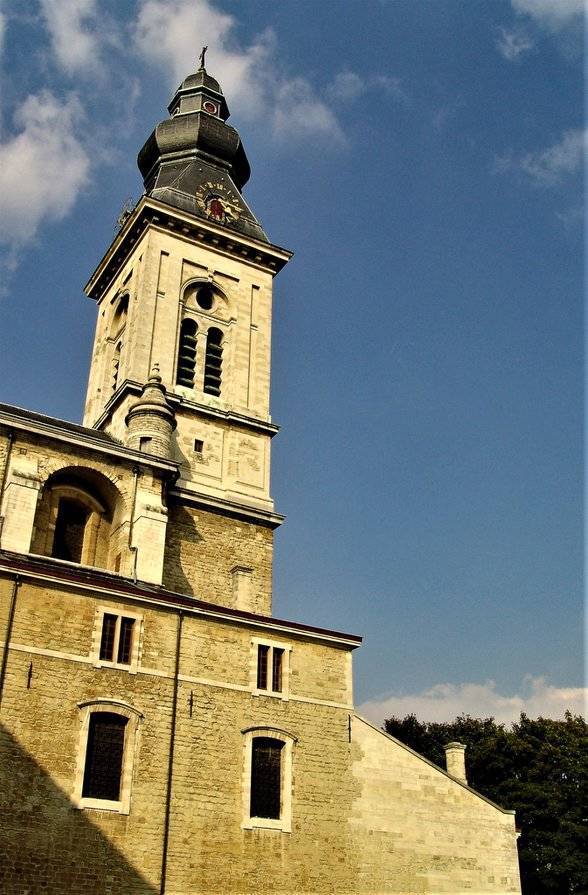 De huidige kerk werd gebouwd op de fundamenten van een vroegere romaanse abdijkerk die op het einde van de 16de eeuw tijdens de godsdienstonrusten werd verwoest.De eerste steen van de huidige kerk werd gelegd door bisschop Antonius Triest in 1629. De kerk werd vervolgens van 1629 tot 1649 gebouwd. Een uitbreiding volgde in de vroege 18de eeuw.Tijdens de Franse bezetting werd ze als opslagplaats gebruikt om vanaf 1810 terug dienst te doen als kerk.