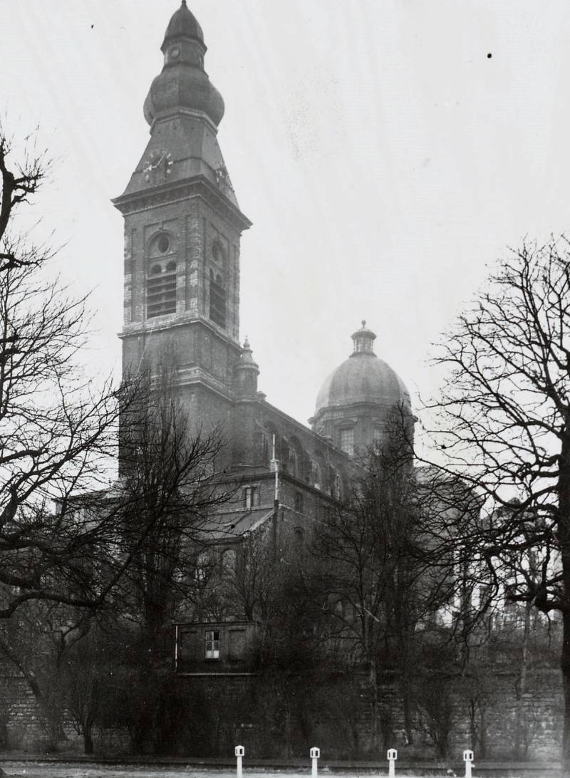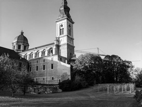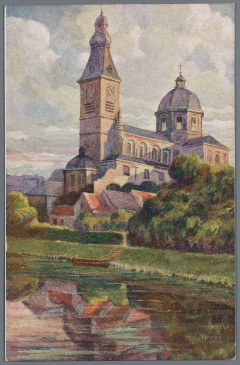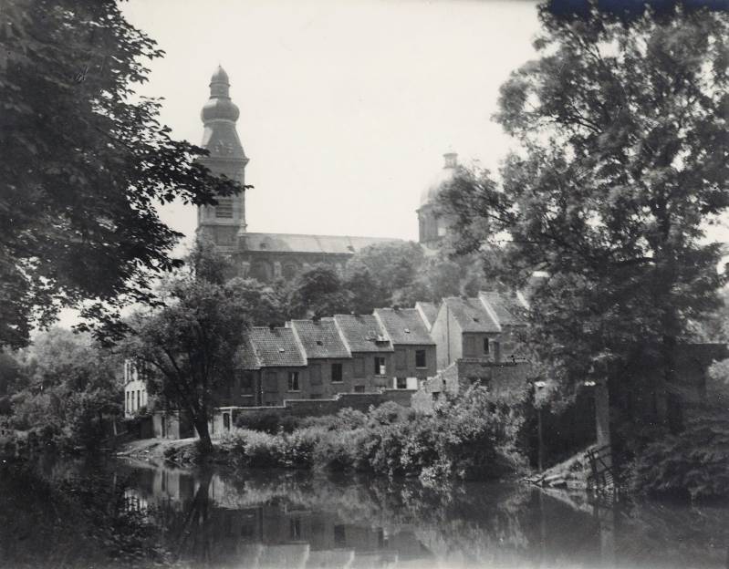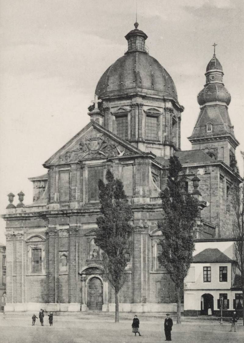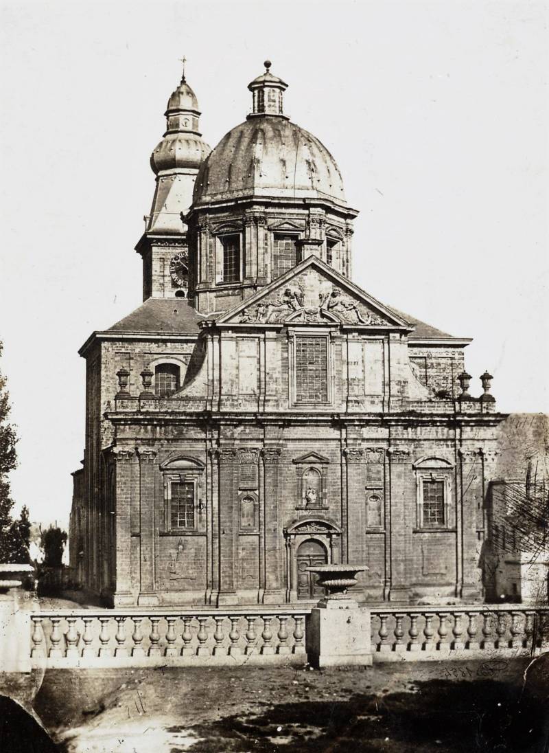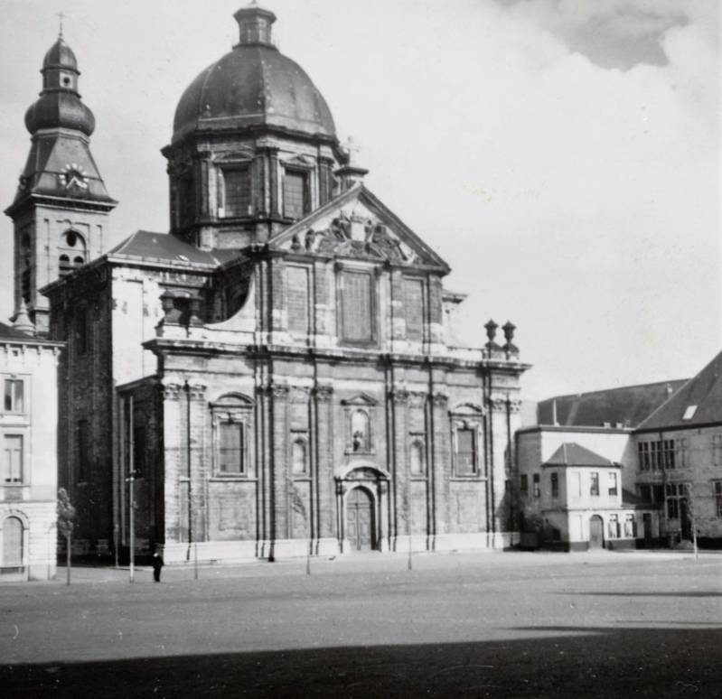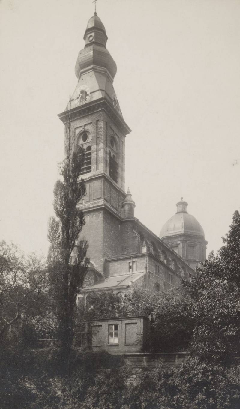De huidige kerk werd gebouwd op de fundamenten van een vroegere romaanse abdijkerk die op het einde van de 16de eeuw tijdens de godsdienstonrusten werd verwoest.De eerste steen van de huidige kerk werd gelegd door bisschop Antonius Triest in 1629. De kerk werd vervolgens van 1629 tot 1649 gebouwd. Een uitbreiding volgde in de vroege 18de eeuw.Tijdens de Franse bezetting werd ze als opslagplaats gebruikt om vanaf 1810 terug dienst te doen als kerk.