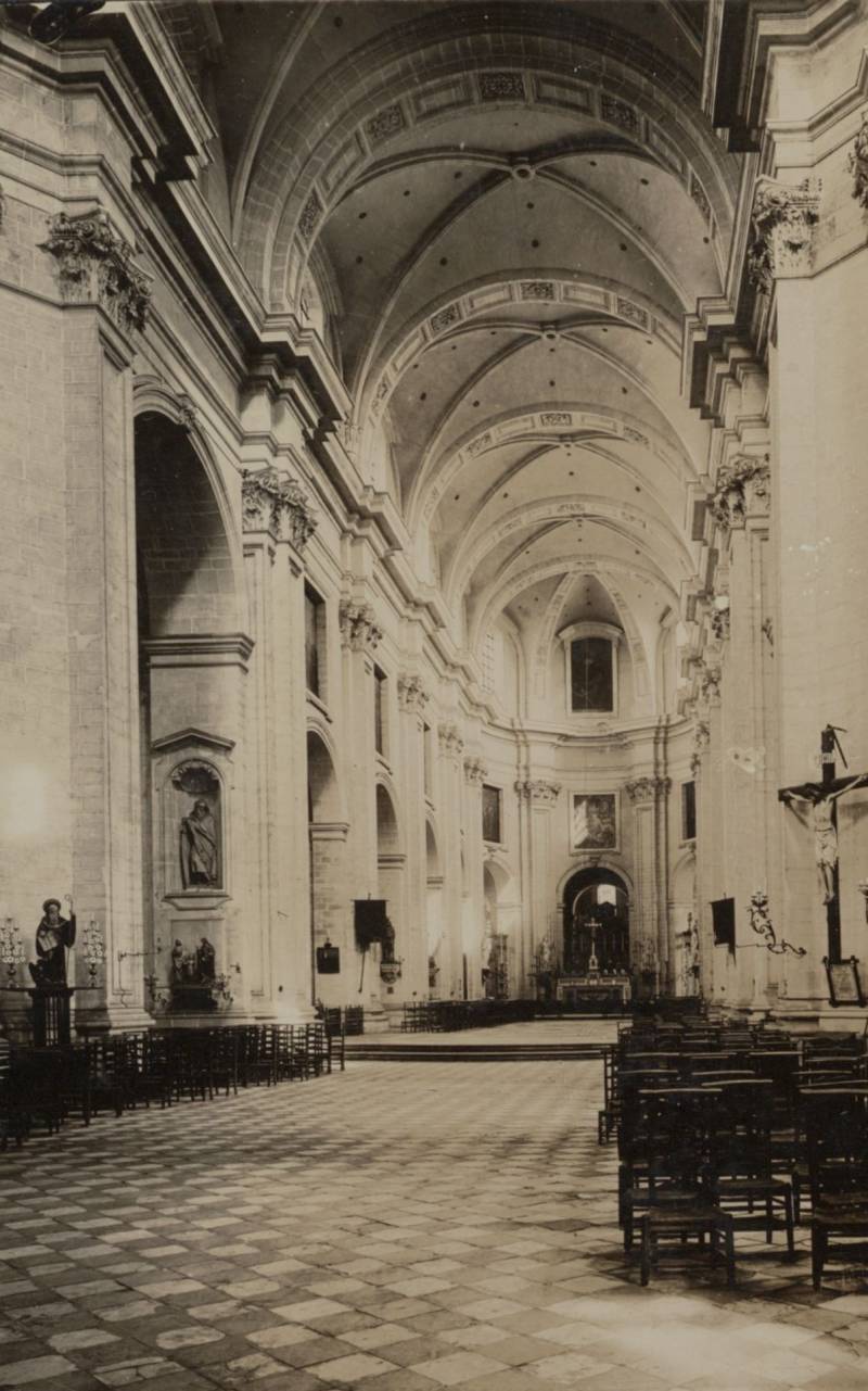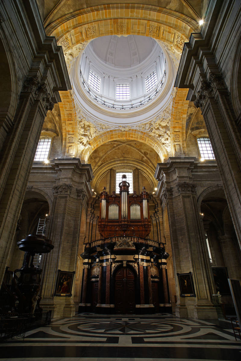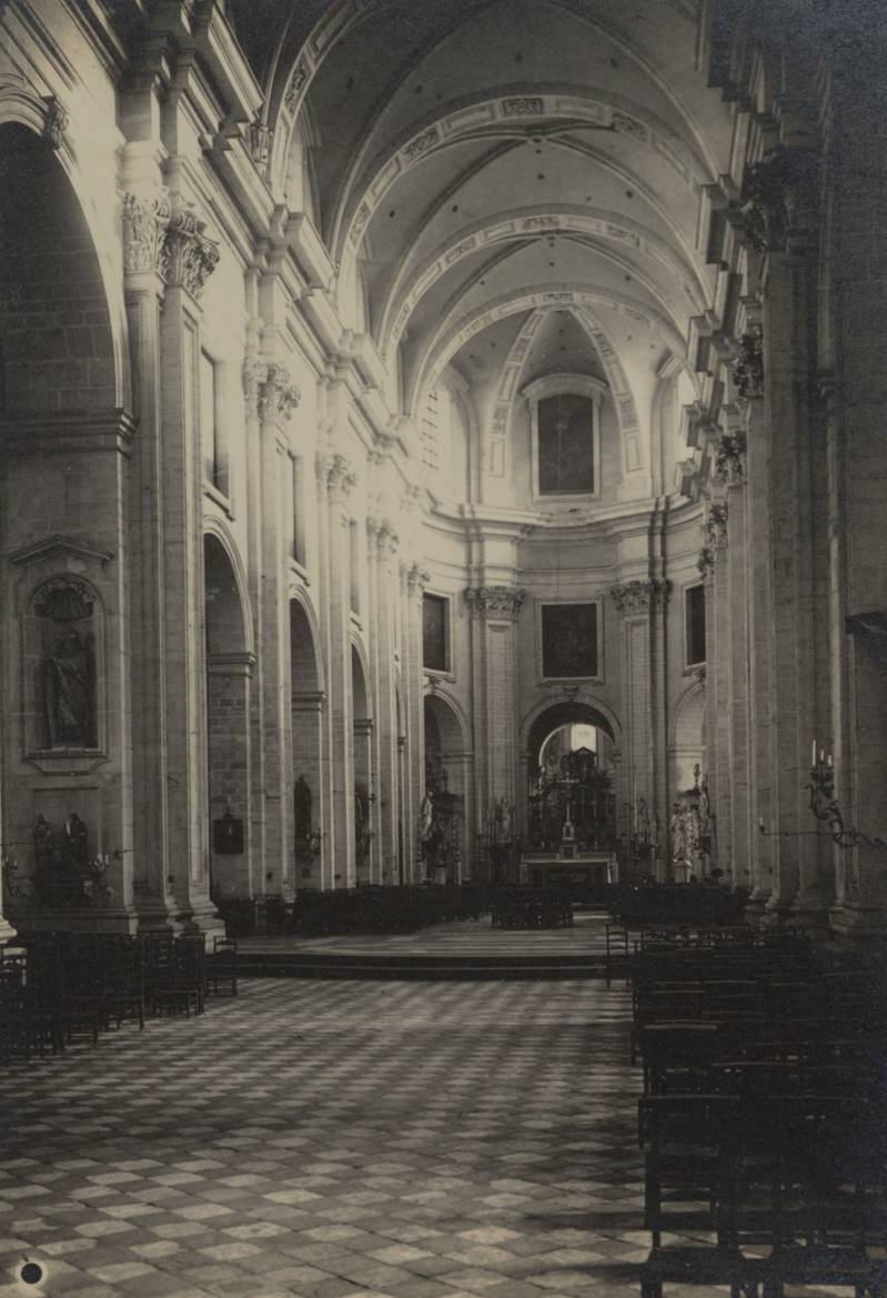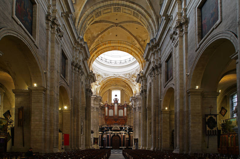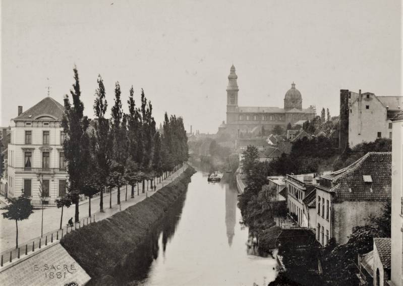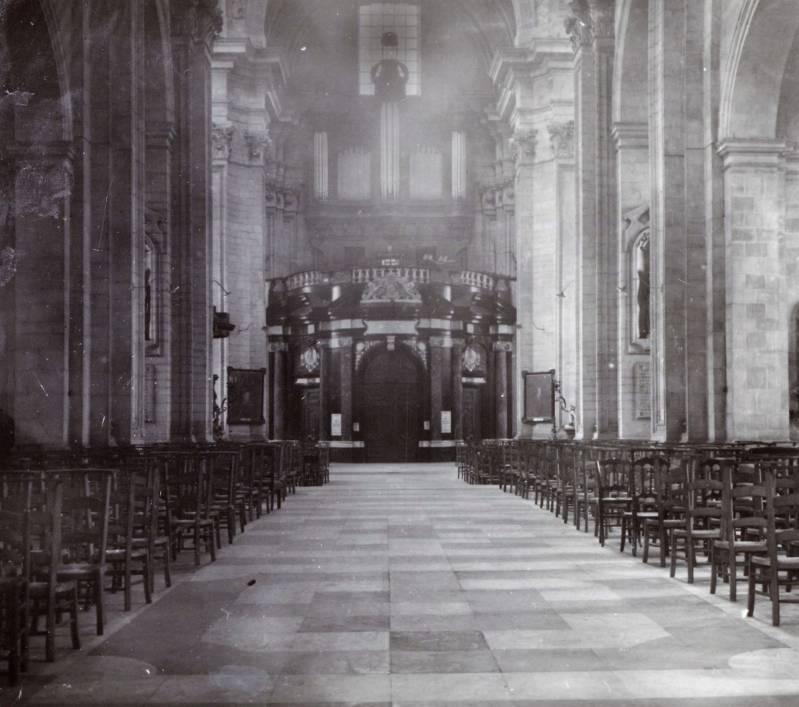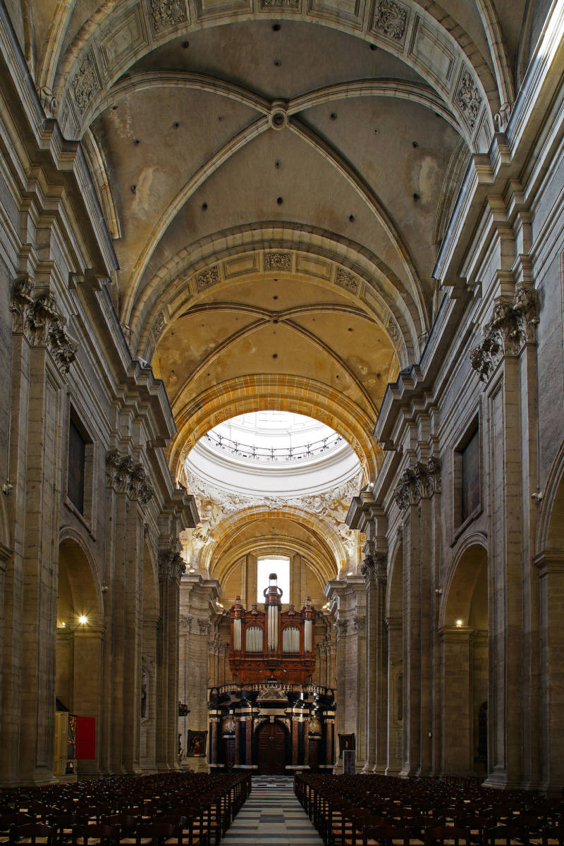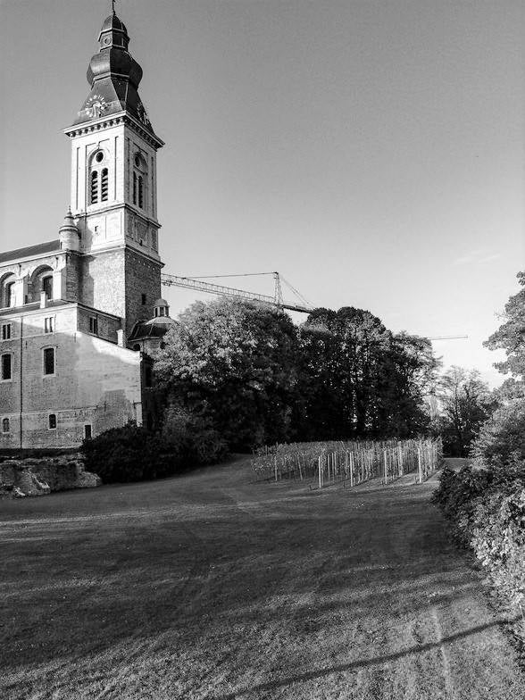De huidige kerk werd gebouwd op de fundamenten van een vroegere romaanse abdijkerk die op het einde van de 16de eeuw tijdens de godsdienstonrusten werd verwoest.De eerste steen van de huidige kerk werd gelegd door bisschop Antonius Triest in 1629. De kerk werd vervolgens van 1629 tot 1649 gebouwd. Een uitbreiding volgde in de vroege 18de eeuw.Tijdens de Franse bezetting werd ze als opslagplaats gebruikt om vanaf 1810 terug dienst te doen als kerk.