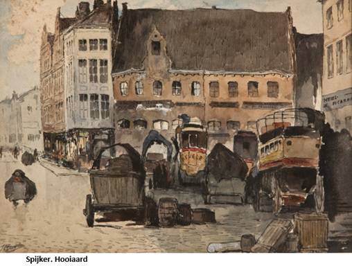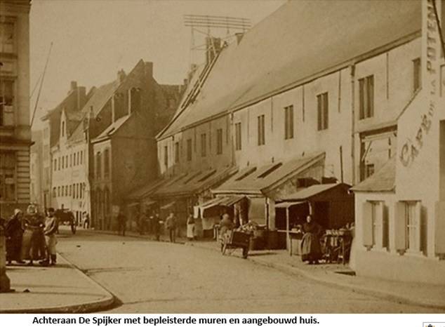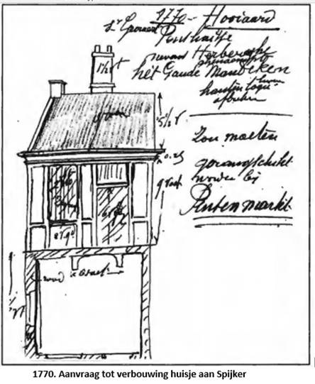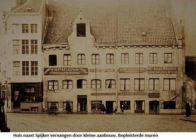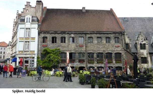 Aan de noordgevel van de Spijker staat een bijgebouwtje ter hoogte van de poort van het Groot Vleesbuis. Een omschrijving uit 1655 leert dat bet gaat om een verkoop stalletje waar gebraden vlees werd verkocht. In 1770 richtte de toenmalige eigenaar Pieter Geeraerts een aanvraag in bij de stad Gent om het houten huisje te vervangen door een stenen huis met twee bouwlagen. Dit werd gerealiseerd in 1772. In 1898 wordt de blinde muur grenzend aan het Vleeshuis ontdaan van zijn pleisterlaag. Verder wordt dit huisje meegenomen in de verbouwing rond rond 1904 van Het Spijker.