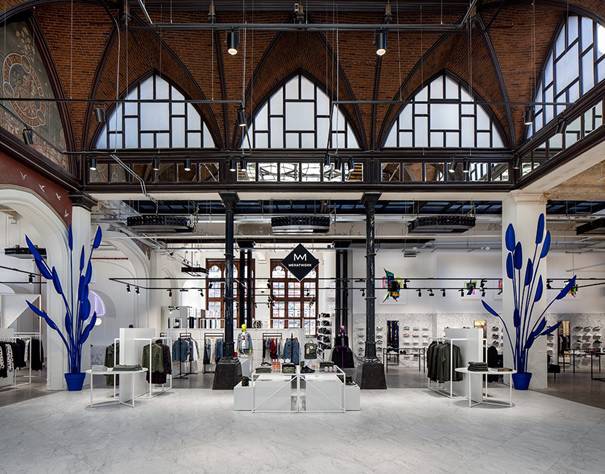 In de voormalige kantoren is er een luxe winkelinrichting en een broodjeszaak.
