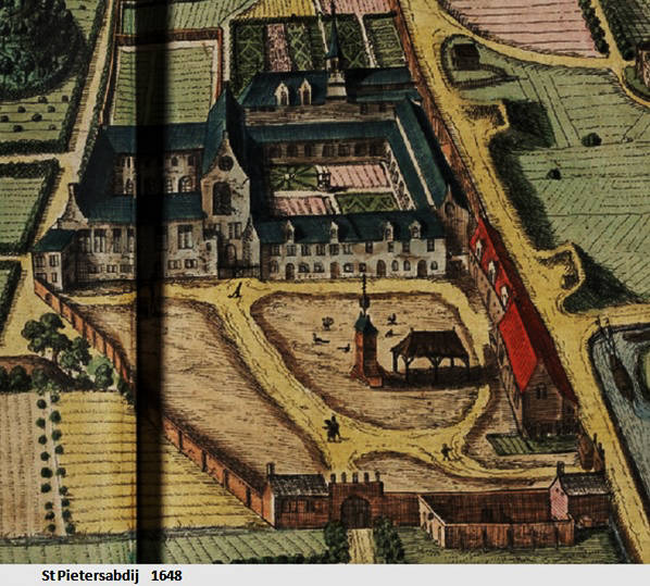 Het oudste plan, het zogenoemde Rode Plan, geeft de toestand van de vijftiende-eeuwse Sint-Pietersabdij weer. Veel gebouwen op dit plan zijn ouder en weerspiegelen de verschillende functies zoals ze vanaf de tiende eeuw binnen een middeleeuwse benedictijnenabdij werden vastgelegd.