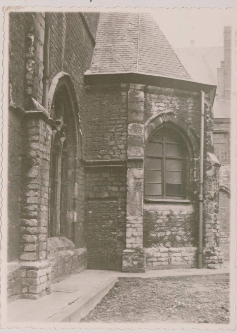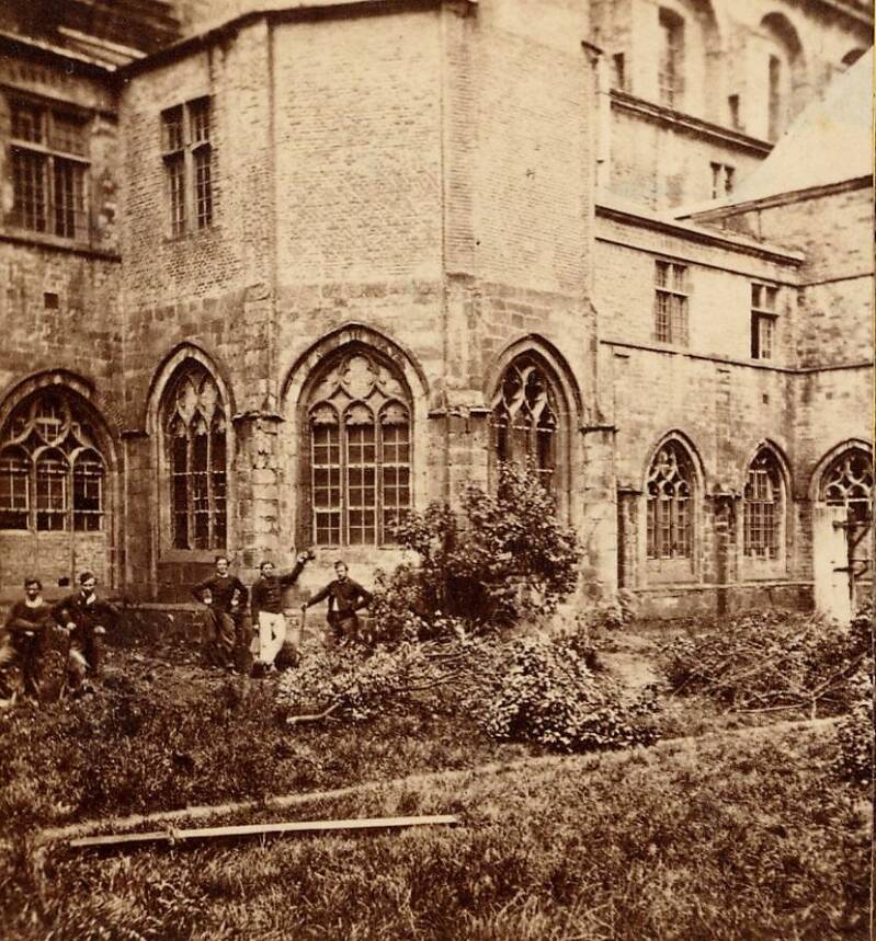 De oude infirmerie werd samen met de pitantie-priorijgebouwen die ernaast lagen, gesloopt. De ruïnes in de tuin zijn hiervan de restanten. Het silhouet van vijftiende-eeuwse uitbouw is nog te zien in de zuidelijke gevel van de kerk. Er werd een monumentale terrastuin aangelegd en een weg tussen de achttiende-eeuwse vleugel en de tuin, een dienstverbinding naar de Scheldekaai