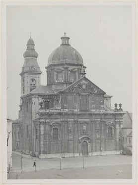 De huidige kerk ontvouwt een typische barokke kerkplattegrond met hier uitzonderlijk een in elkaar gewerkte westelijke centrale en een oostelijke longitudinale aanleg, tot 1845 van elkaar gescheiden door een grote portiek. De centrale aanleg (normaal in het oosten) in de vorm van een Grieks kruis met centrale koepel is duidelijk geïnspireerd op de Sint-Pieterskerk te Rome. De longitudinale partij met basilicaal koor van vier traveeën, halfronde absis, kooromgang en zeszijdige askapel met sacristieën vormde het oorspronkelijk koor van de monniken.