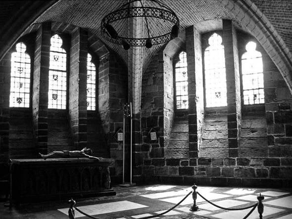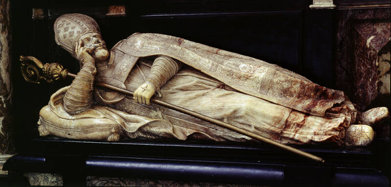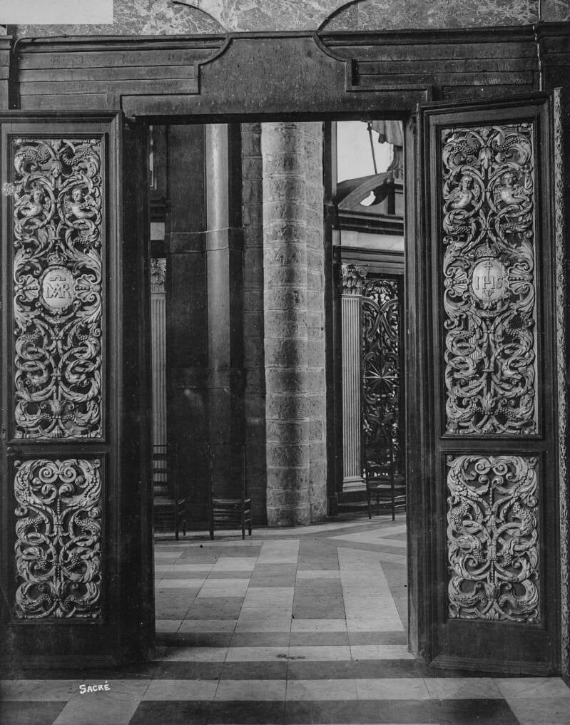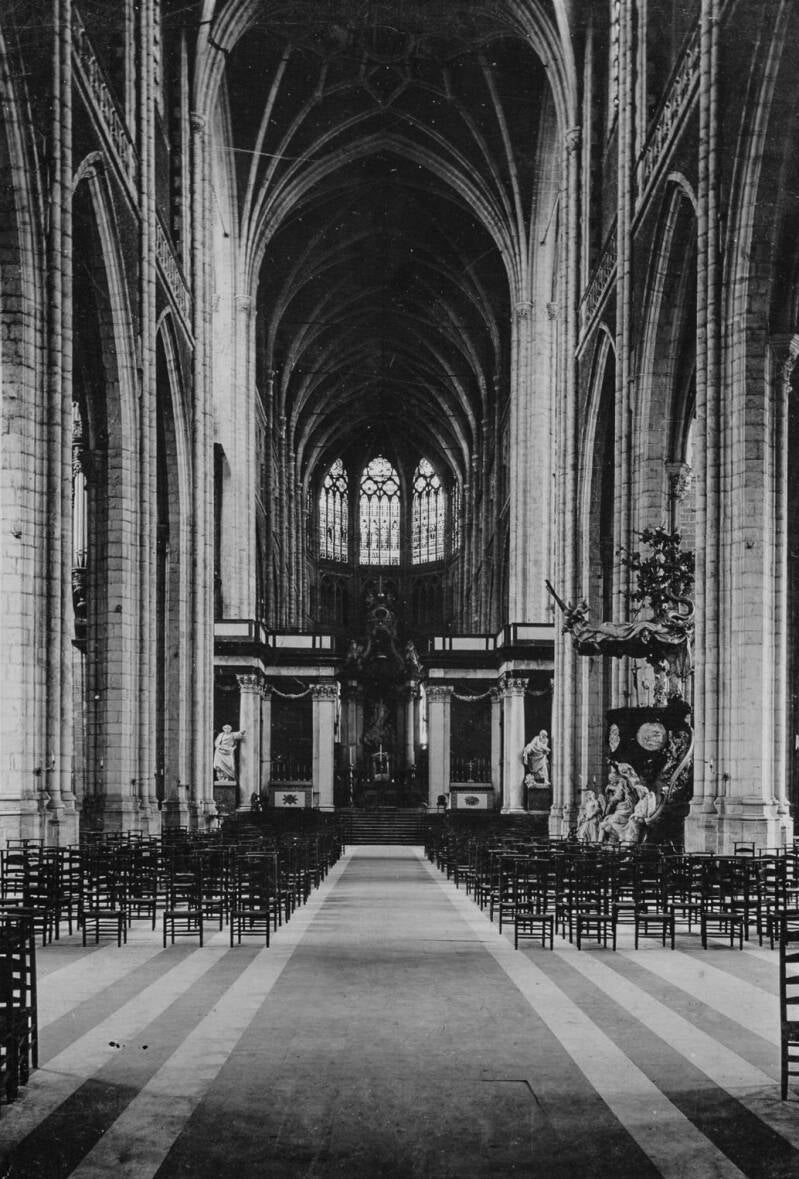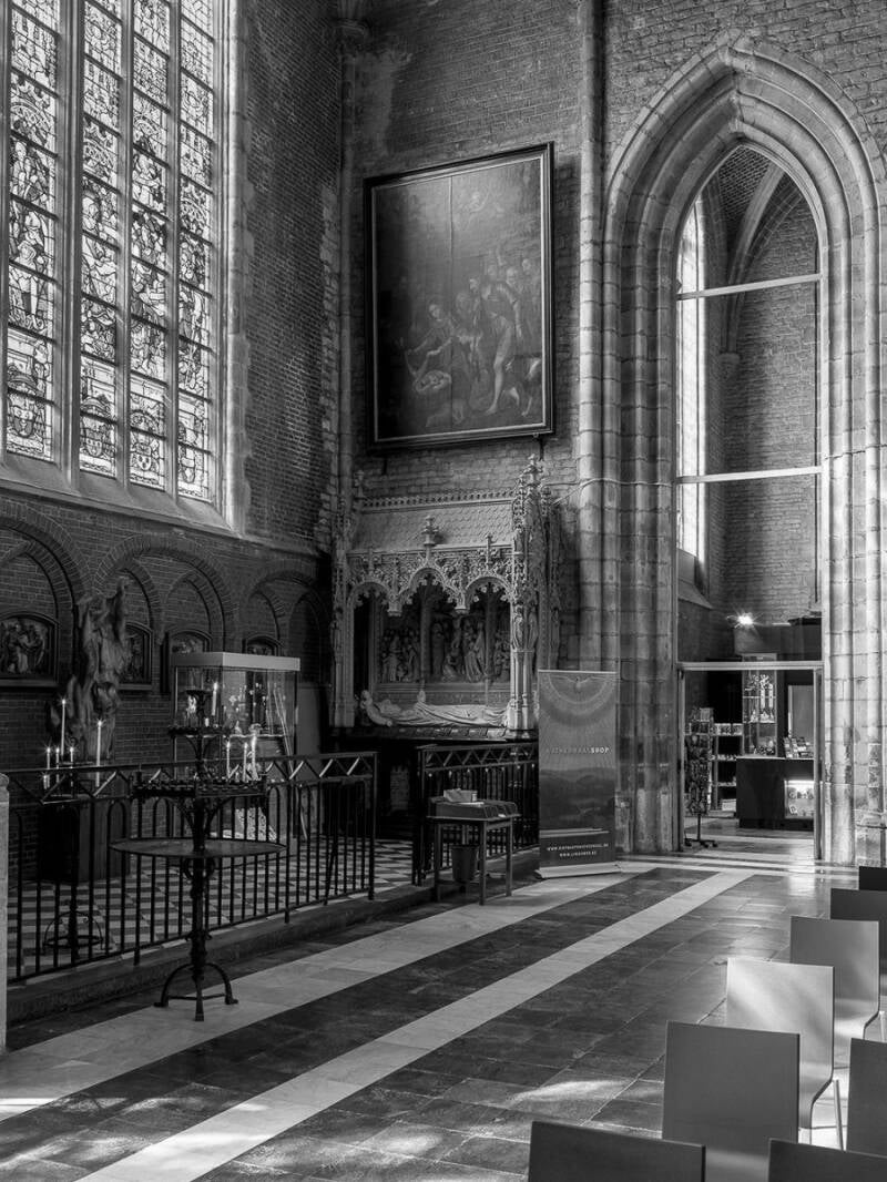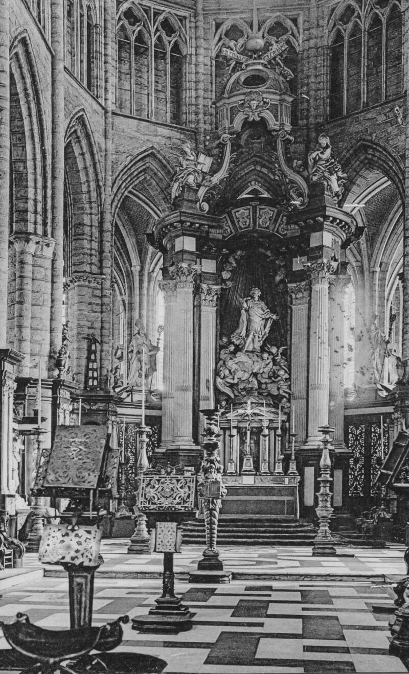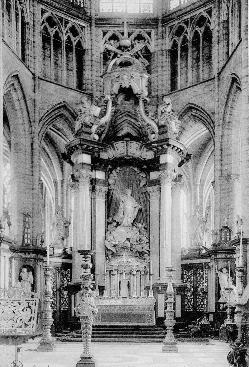 In de verte schittert het zwart-witte hoogkoor, aan de zijkant de weelderige rococopreekstoel, en verspreid de volumineuze beelden en portiekaltaren. De indrukwekkende verzameling religieuze objecten, daterend uit de 8ste tot 21ste eeuw, behoort tot de top van de Belgische kunst. Het westportaal. Een renaissancistisch tochtportaal leidt de kerkganger sinds 1572 naar binnen. De vormentaal spreekt voor zich: een tempelconstructie met halfzuilen op zware sokkels. De kroonlijst bevat de lijfspreuk van schenker Viglius Aytta, toen priester van de kerk. In het fronton prijkt zijn wapenschild tussen dat van het kapittel en de Sint-Baafsheerlijkheid.