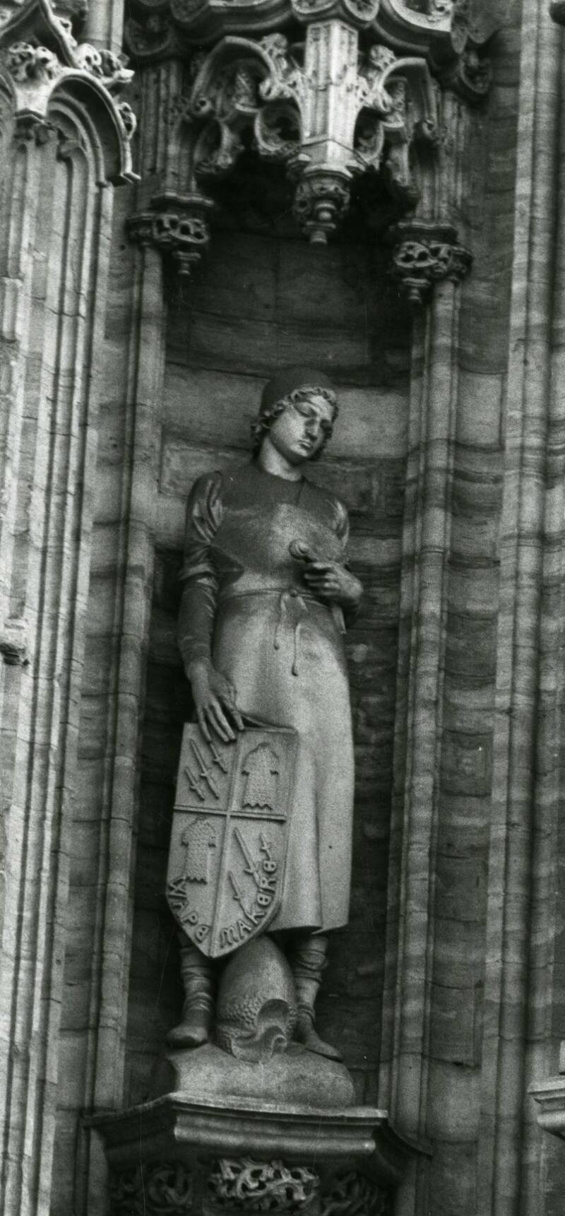 Een apart verhaal in de geschiedenis van het stadhuis is dat van de beelden in de nissen van het gotische gedeelte. Naarmate de restauratie van de gotische gevel zijn voltooiing naderde, begon het probleem van de lege nissen in de gevel zich pregnanter te stellen. Het waren de beeldhouwers van Gent die de kar in die richting hadden geduwd. Reeds in oktober 1866 hadden ze een brief gestuurd naar het stadsbestuur waarin ze schreven dat ze zich in vergelijking met andere steden achtergesteld voelden en dat het stadhuis, welker herstelling nu weldra zal geëindigd zijn, de gedroomde oplossing was om hierin verandering te brengen, daar in de gevel van het gebouw een aantal nissen voorkomen die door den bouwmeester bestemd werden tot het plaatsen van beelden. Ware het niet schoon zijn werk te vervolledigen en alzoo aan de Gentsche beeldhouwers de gelegenheid te verschaffen die zij dringend verlangen?