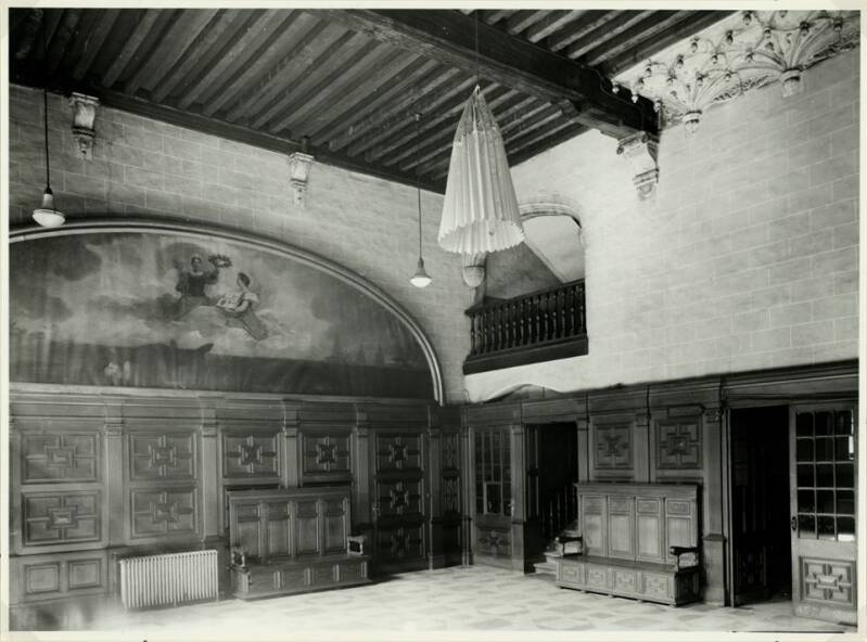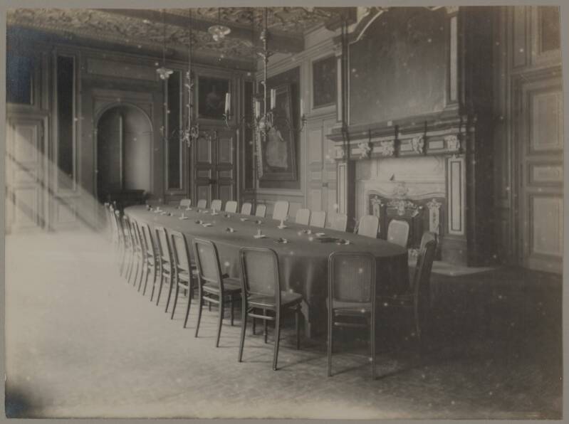 Vanuit de Pacificatiezaal ging het naar de trouwkapel, waar we uitleg kregen over de voorloper van het OCMW, en vervolgens naar de vergaderzaal waar het Schepencollege achter gesloten deuren zetelt en kregen we te horen hoe dat vroeger gebeurde.