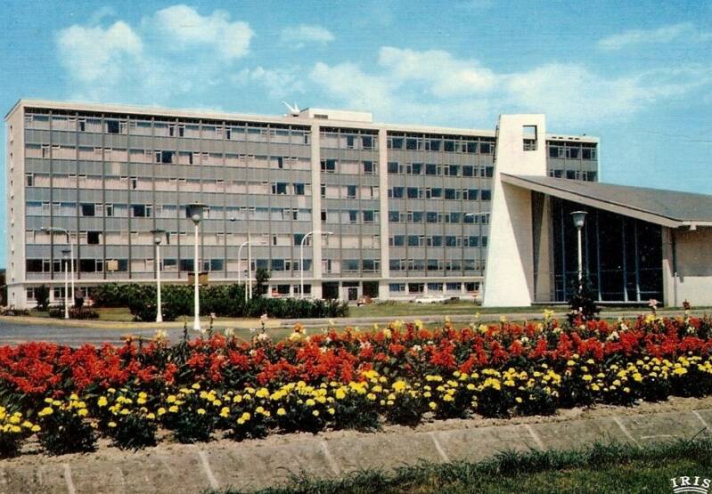 De architecten kiezen voor hun ontwerp voor een blok- en paviljoenensysteem waarbij de hospitalisatieafdelingen, klinieken, poliklinieken, technische diensten en instituten gegroepeerd zijn in aparte gebouwen. Om de rust van de patiënten te garanderen, wordt de eigenlijke hospitalisatievleugel afgescheiden van de poliklinische en onderwijsafdelingen door een centraal gebouw met de apparatuur, technische en administratieve diensten. Het uiteindelijke ziekenhuis zal quasi volledig volgens dit ontwerp worden opgetrokken. Nadat de regering alvast tien miljoen had vrijgemaakt voor de bouw, wordt in maart 1937 de eerste paal in de grond gestampt. Het hele complex staat vanwege de drassige Scheldegrond immers op paalfunderingen en is opgehangen aan een stalen skelet. Hoewel iedereen aanvankelijk hoopvol is over een snelle afwerking, lopen de bouwwerken veel vertraging op, vooral omdat er geen officiële en algemene coördinator is. Als de Tweede Wereldoorlog de bouwwerken stillegt, is enkel de ruwbouw bijna klaar.