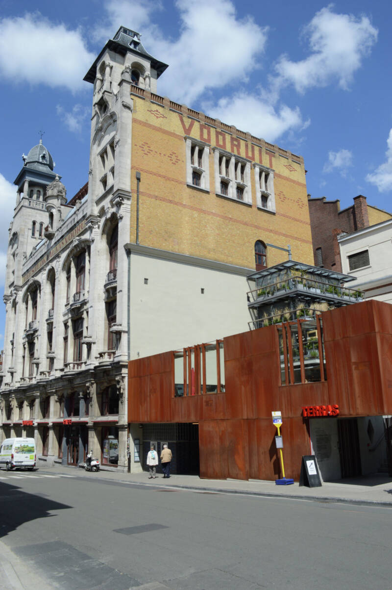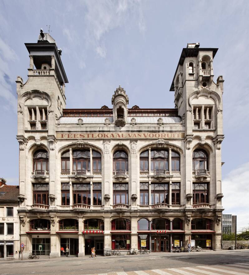 Het Feestlokaal van Vooruit werd ontworpen door Ferdinand Dierkens en werd gebouwd tussen 1911 en 1913. Het gebouw is genoemd naar de socialistische verbruikersorganisatie (of coöperatie) Vooruit (1891-1970), die door onder anderen Edward Anseele uit de grond werd gestampt om de fabrieksarbeiders te beschermen tegen de labiliteit van het grootkapitaal. In de "kunstentempel Vooruit" konden arbeiders tegen erg democratische prijzen eten, drinken en van cultuur genieten.