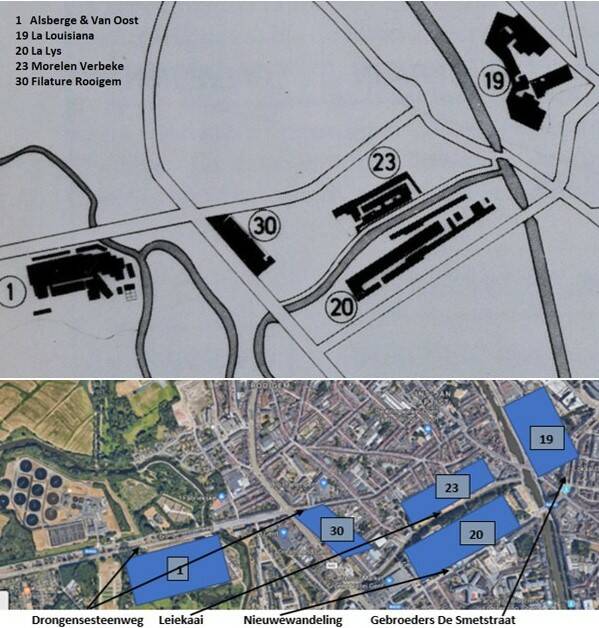 Blekerij opgericht op de Assels aan de oude Leiearm op de grens met Gent en omgracht door een beek, door August Van Oost en Joseph Alsberge in 1879.