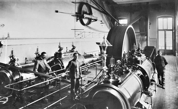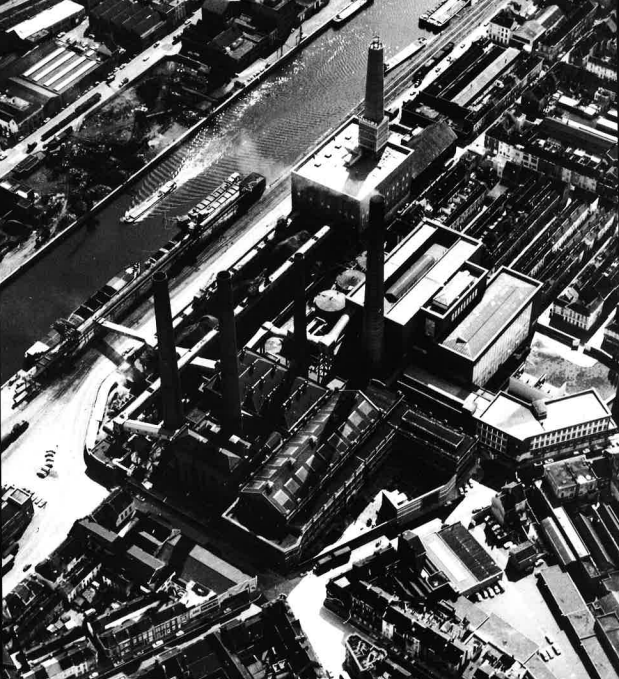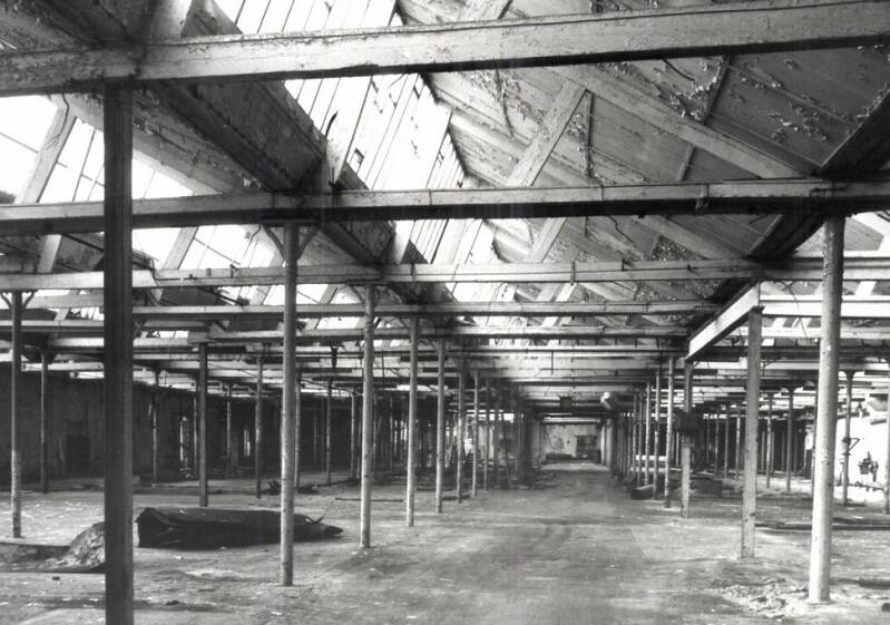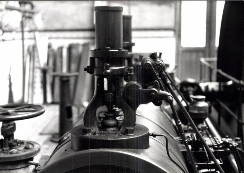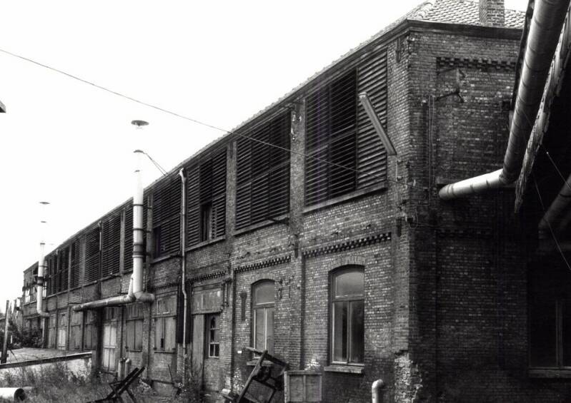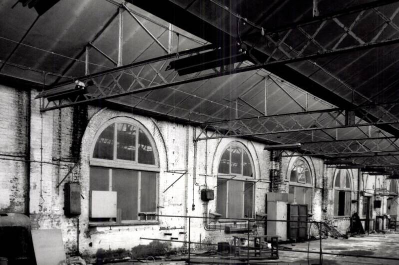 Het onderhoudsatelier met smidse van 1900 bevond zich tussen machine- en ketelzaal. De drie zadeldaken zijn aan de zijkanten gevat tussen puntgevels.