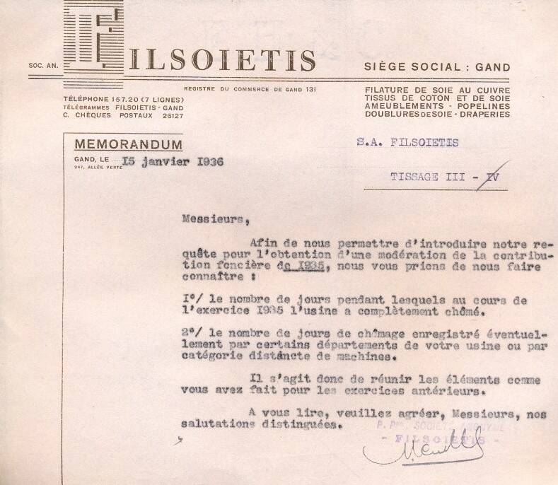 NV Filsoietis (een der eerste viscose- of kunstzijdespinnerijen van Vlaanderen, voorloper van Fabelta
