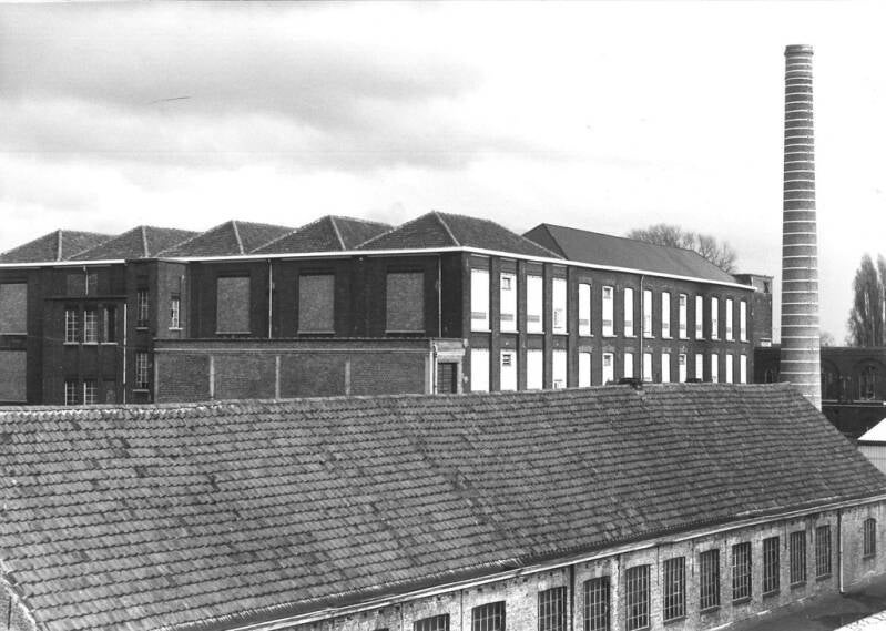 Tot de oudste delen van het complex behoren, behalve het woonhuis Voortman (Vogelenzang nummer 22-23) de huidige magazijnen en garages aan Vogelenzang, en aansluitend hierbij de huidige magazijnen en ateliers in het noordwesten van het fabrieksterrein (einde 18de - begin 19de eeuw), afkomstig van de vroegere katoenspinnerij. Bakstenen gebouwen van twee (atelier en magazijn reservestukken), drie en vier bouwlagen (garage, magazijnen en showroom), onder zadeldak (Vlaamse pannen). Getoogde openingen met tegel- of hardstenen dorpels en ijzeren roedeverdeling, in verankerde (vroeger gekalkte) gevels op gecementeerde plint. De vier bouwlagen hoge constructie aan Vogelenzang bezit in gelijkvloers verdieping bouwnaden van rondboogpoorten, afkomstig van vroegere stallingen. Tussen tweede en derde bouwlaag ontlastingsboog over gans de breedte der gevel (drie traveeën) en typische plaatsing van zogenaamde "weefkamer-vensters" onder kroonlijst. Interne constructie door middel van houten moer- en kinderbalken (in het atelier thans grotendeels vervangen door metalen I-balken), op sommige plaatsen ondersteund door gietijzeren kolommen; op begane grond hier en daar nog arduinen machine-funderingen merkbaar, waarvan sommige duidelijk recuperatiematerialen van oudere constructies zijn.