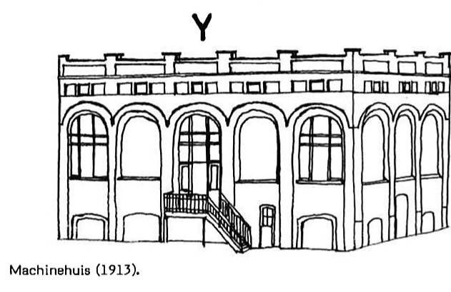 Vlak tegenover de machinekamer werd het ketelhuis D opgericht. Wellicht stond dit om veiligheidsredenen op enige afstand van het hoofdgebouw. De hoge schouw CC stond naast het ketelhuis en had dezelfde structuur als de huidige nog bestaande schouw (januari 1979).