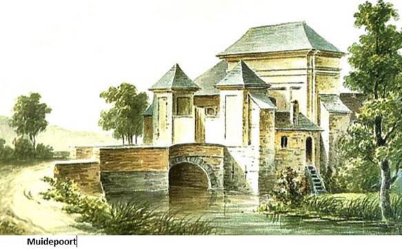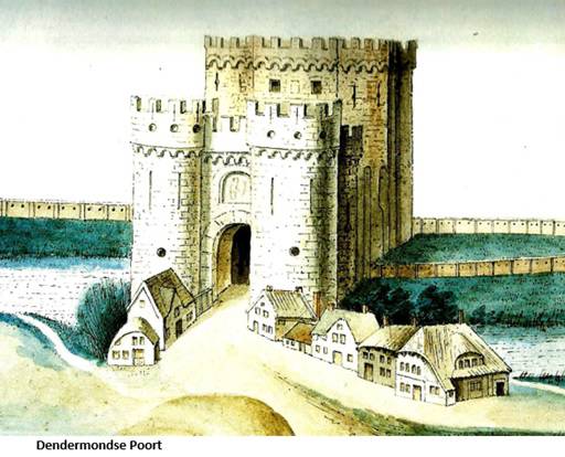 Oostelijke toegangspoort, richting Dendermonde, gelegen op de gronden van de Sint-Baafsabdij.