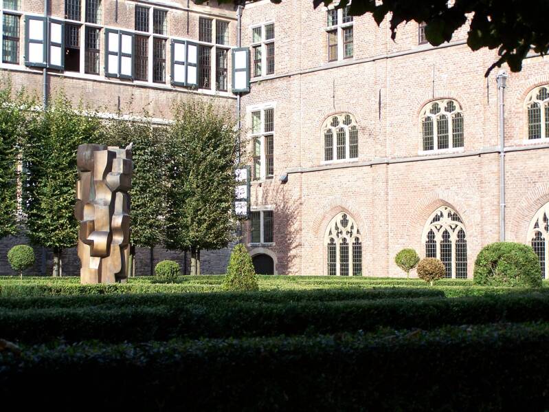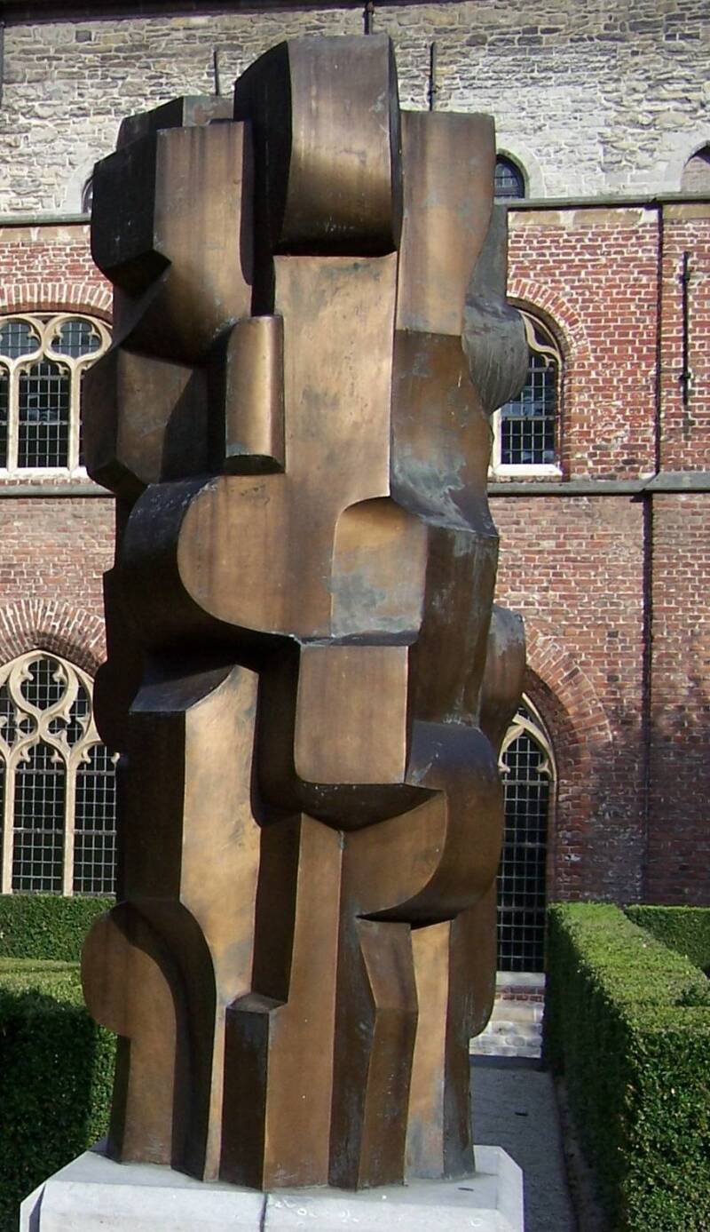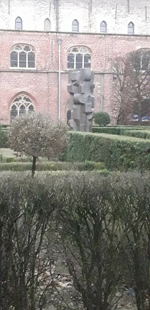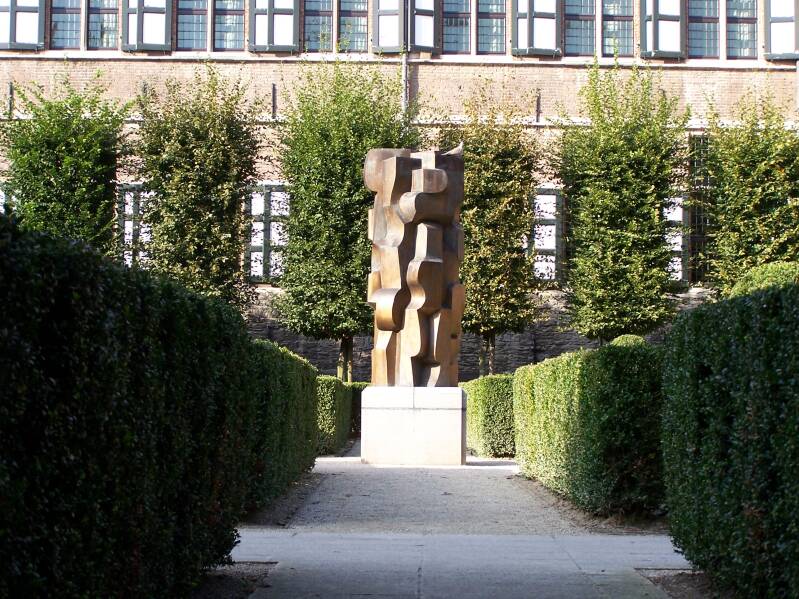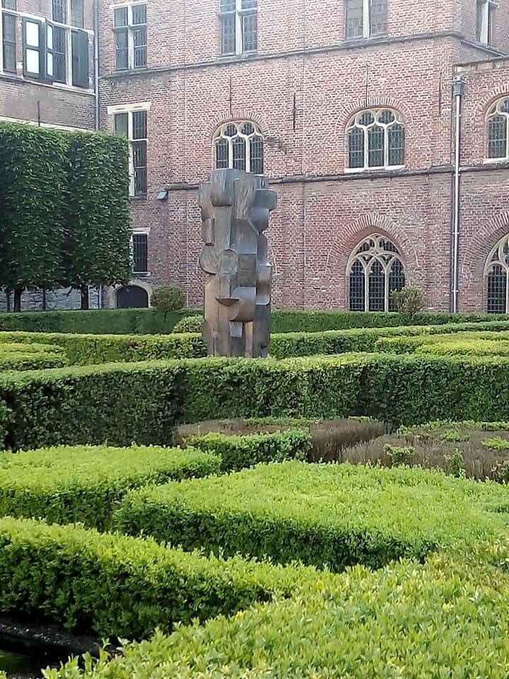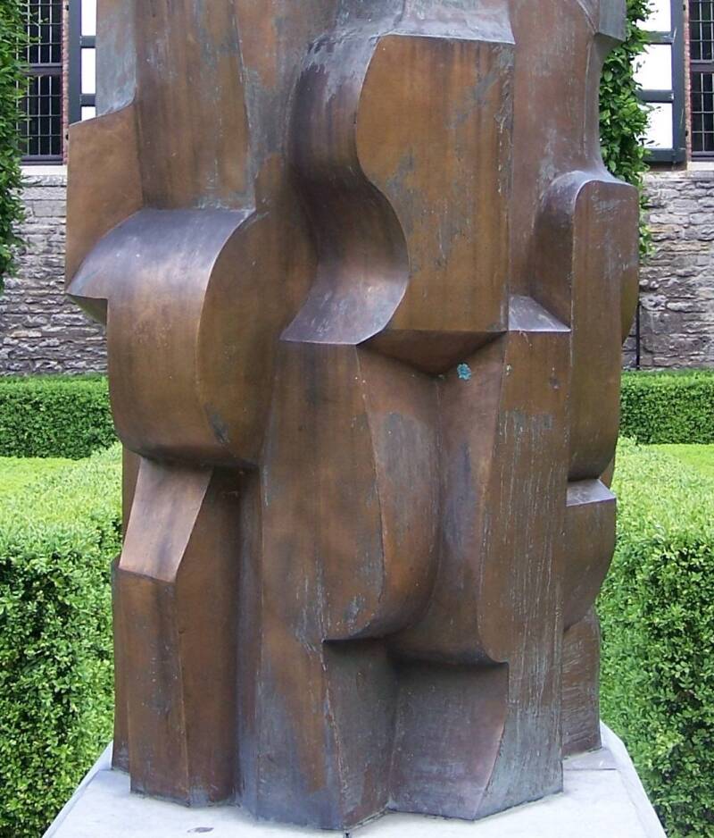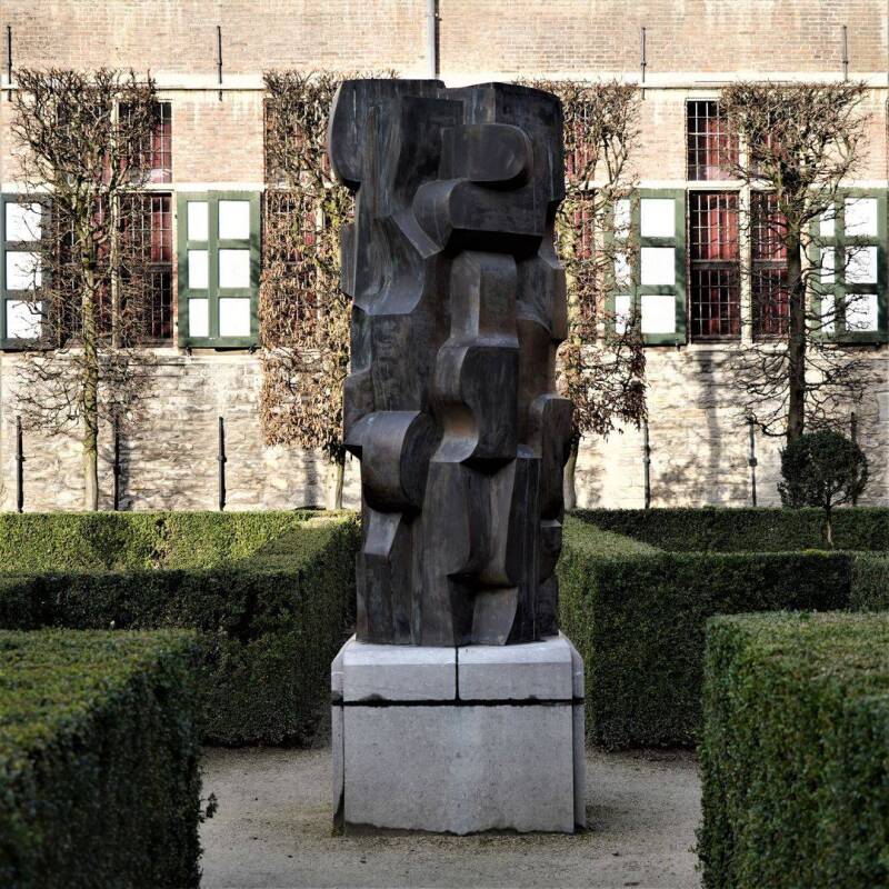 Abstract bronzen beeld van Maurits Witdouck in tuinen Pand