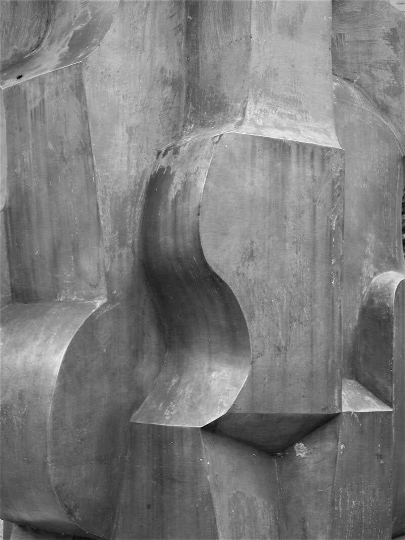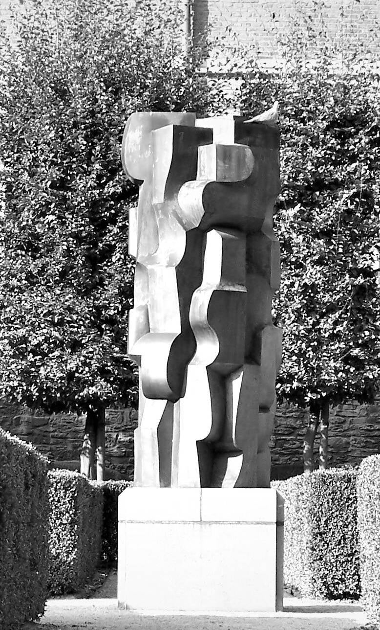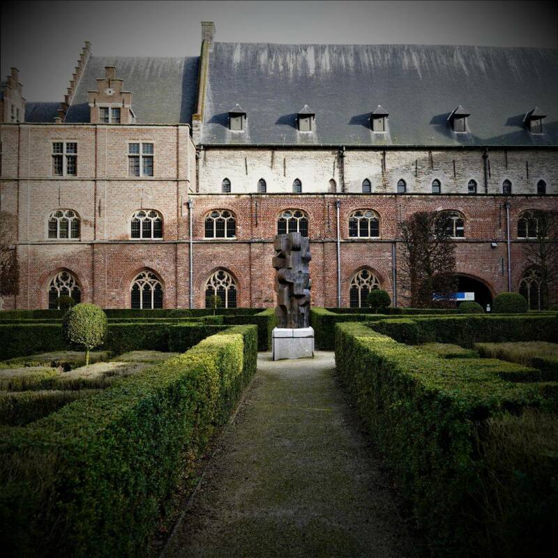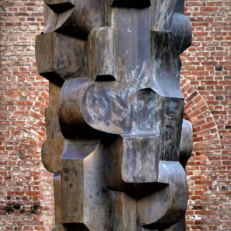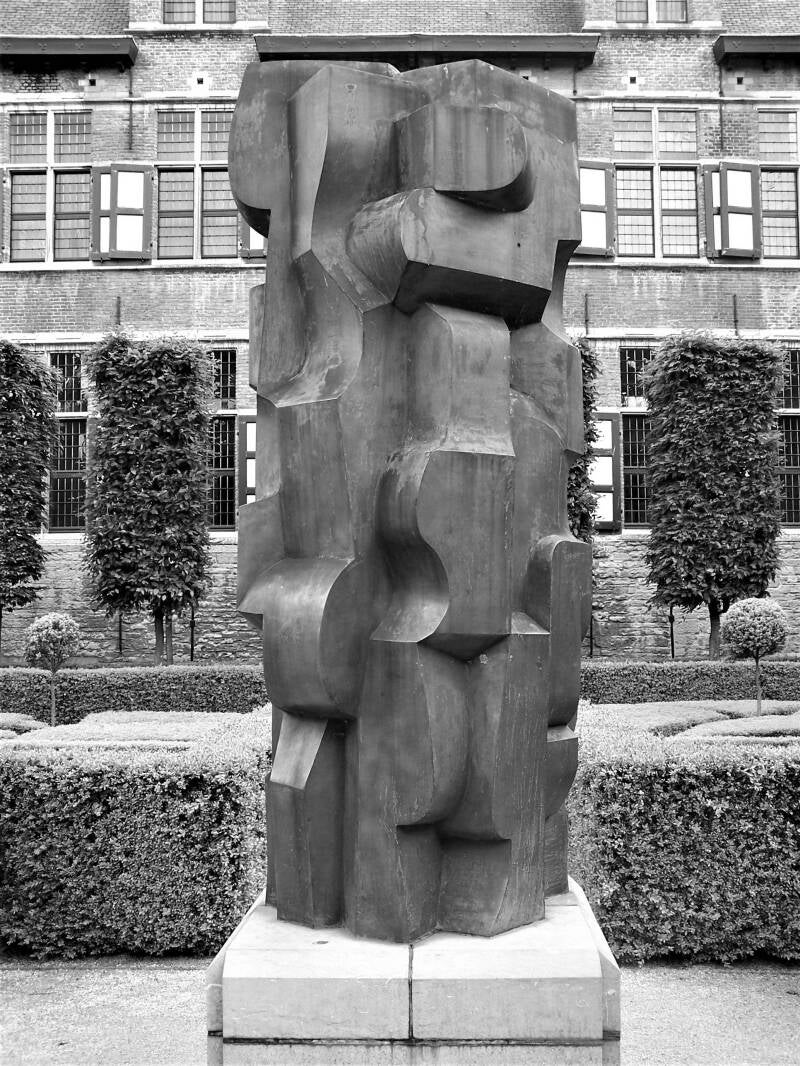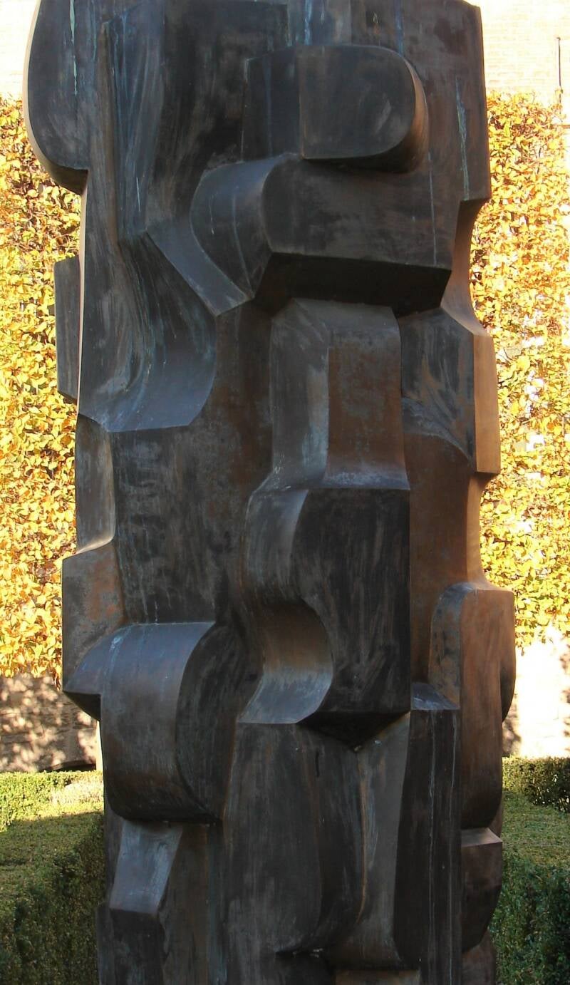 Abstract bronzen beeld van Maurits Witdouck in tuinen Pand