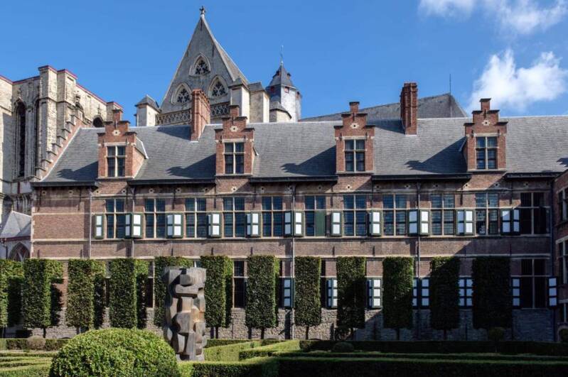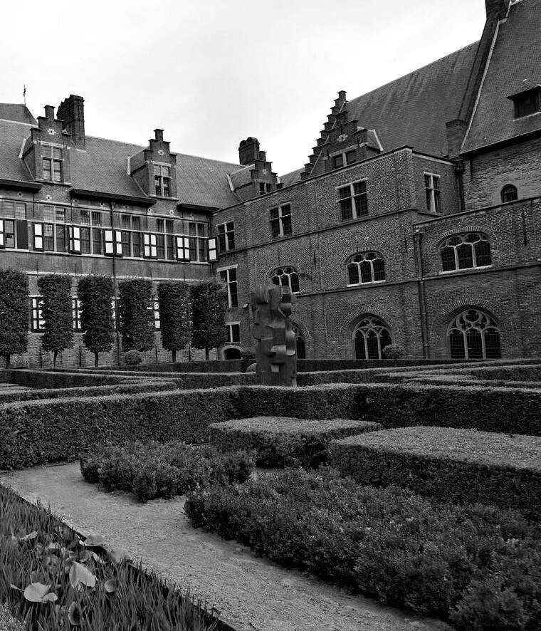 het abstract werk in brons van Maurits Witdouck verwijst naar de verstrengeling van de 11 faculteiten van UGent. Maakte eerst een studie ontwerp, waarna het later in de tuin van het Pand werd geplaatst