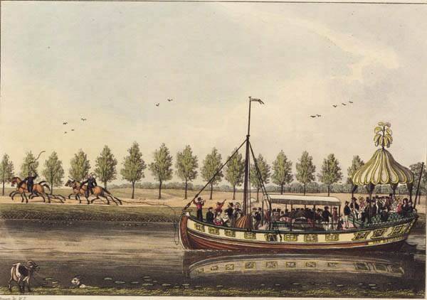 Tussen Gent en Brugge werd, van 1613 tot 1624 een kanaal, de bekende Brugsevaart, gegraven. Bekostigd door de Staten van Vlaanderen en gesubsidieerd door het hertogelijk paar Albrecht en Isabella, moesten deze werken renderen. Door de Staten van Vlaanderen werden weelderig vervaardigde trekschuiten bedacht die dagelijks en op vaste uren, zowel uit Gent als uit Brugge zouden vertrekken. Reeds in 1623 in aanbesteding gegeven, kwamen de eerste twee bargies een paar jaar later in de vaart.