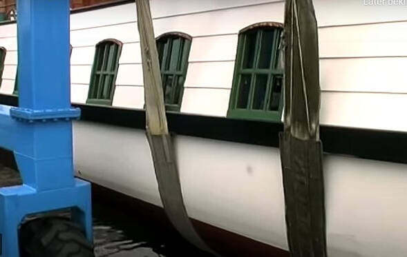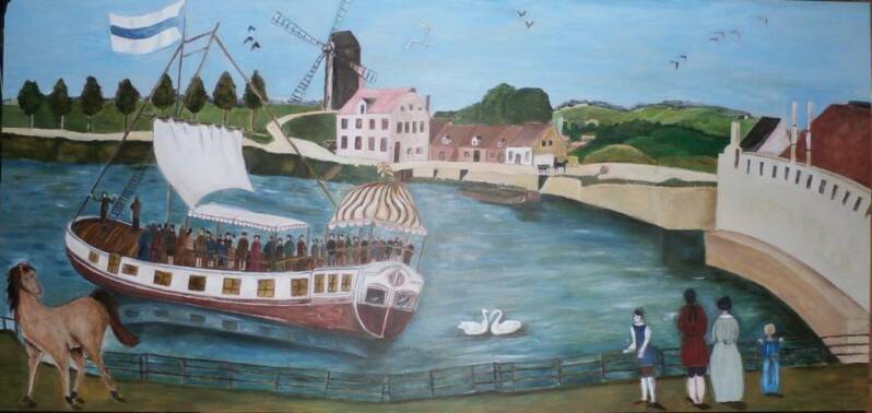 De barge werd met vijf paarden getrokken, maar als er een goede wind was, kon er ook gezeild worden.