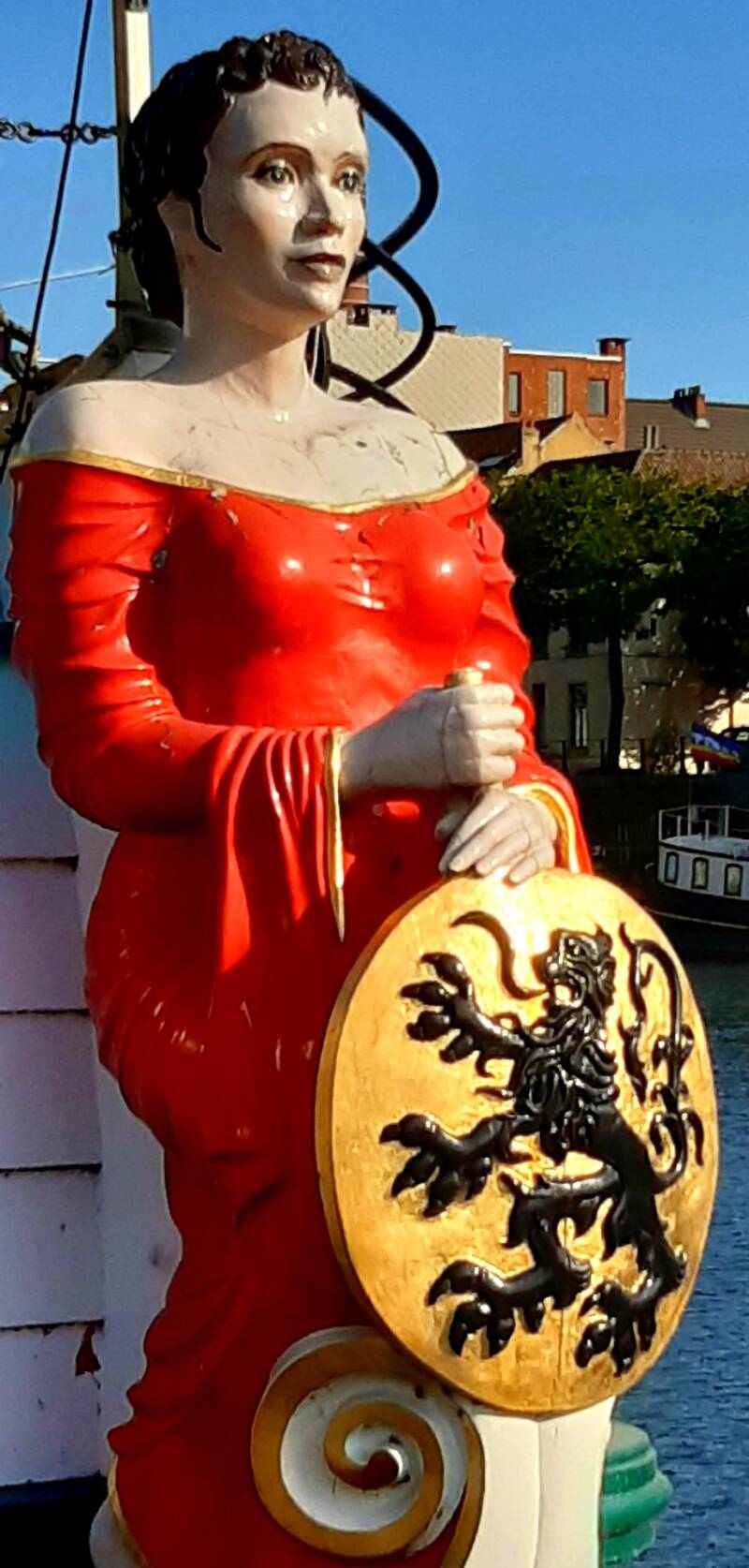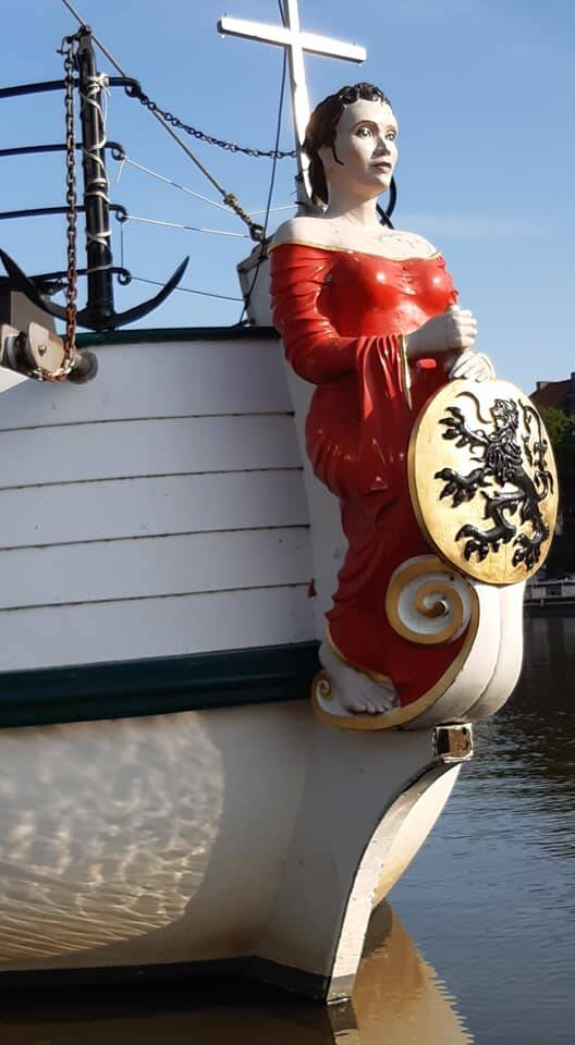 Voor het snijden van het boegbeeld had de Steenschuit een beroep gedaan op het beeldhouwerscollectief Loods 13 in Gent.