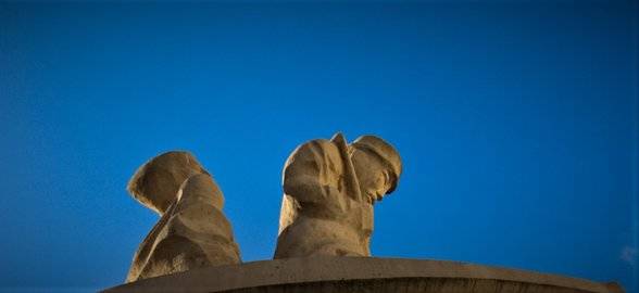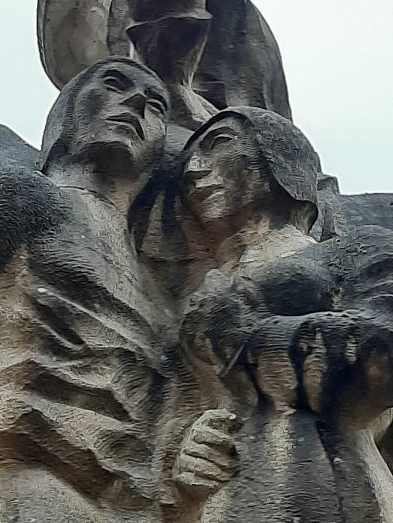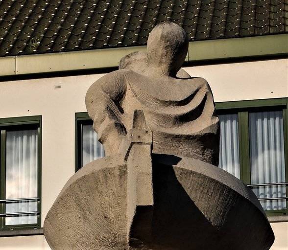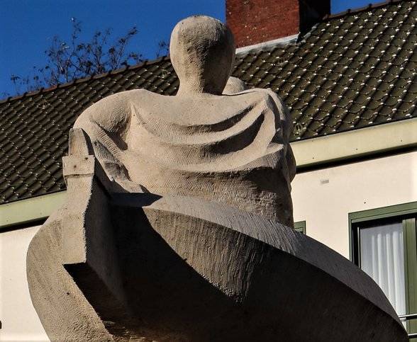 Op het beeld zien we Karel & Janneke in een innige omhelzing, met de vader van Janneke aan het weefgetouw erboven.
