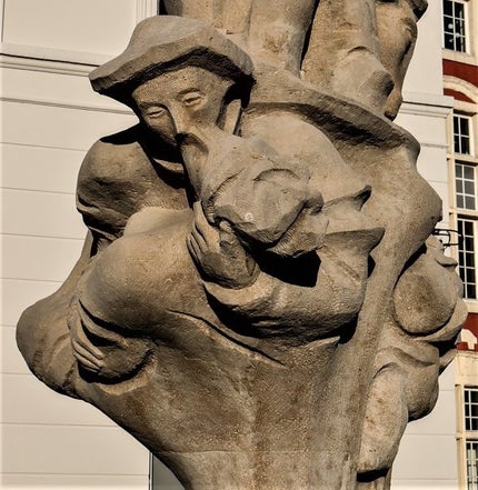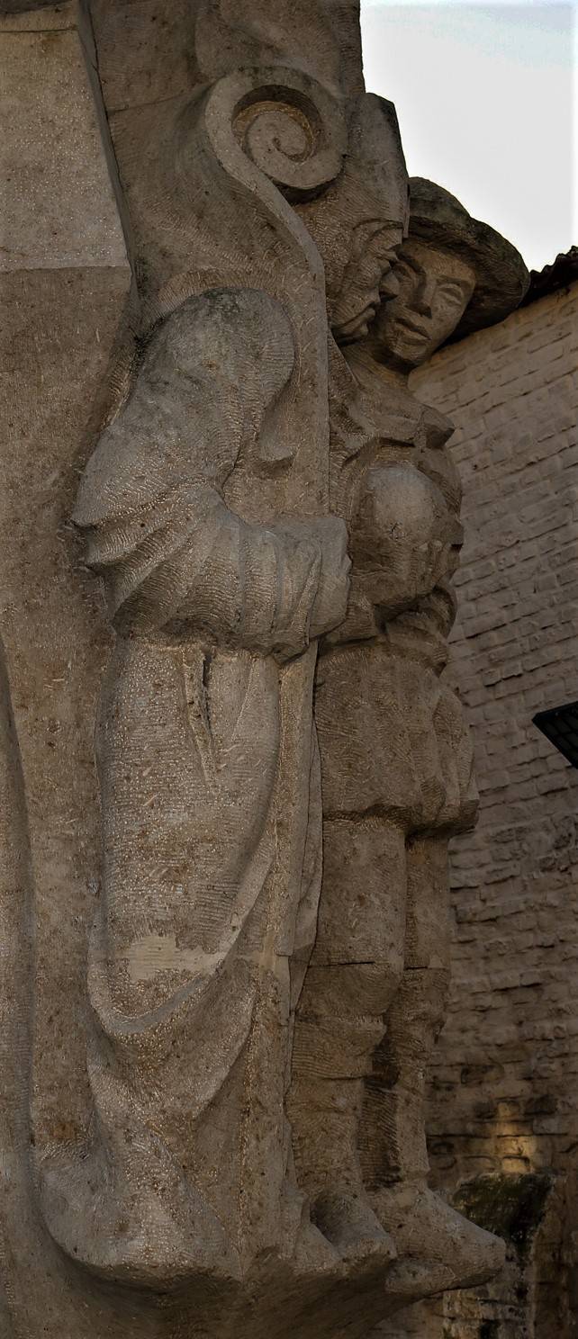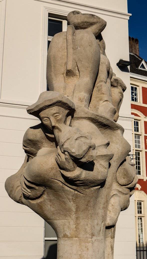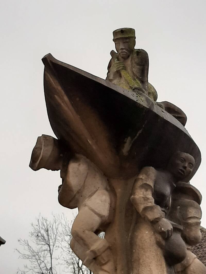 Dit beeld is eenvoudig te herkennen aan het schip bovenaan. Aan de achterzijde zie je de schipper die Karel berispt tijdens de maaltijd.