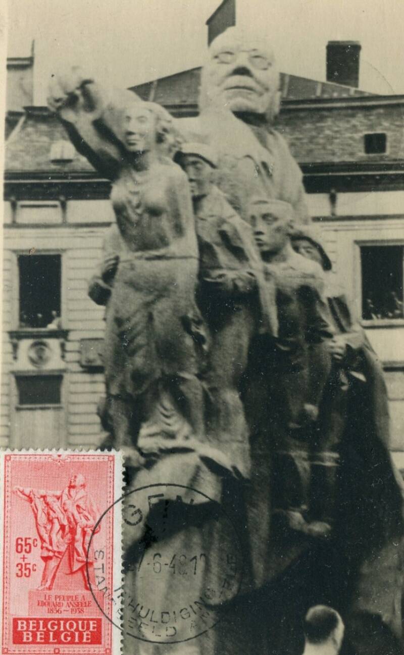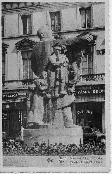 Eduard Anseel (Gent, 26.07.1856 – Gent, 18.02.1938) was een socialistisch voorman. Volksvertegenwoordiger (1894-1936); Gents schepen (1909-1913; 1922-1925; 1932-1933); waarnemend burgemeester tijdens de Eerste Wereldoorlog; Minister van Openbare Werken (1918-1921), van P.T.T. (1925-1927), van State (1930). Als medestichter van de Vlaamse Socialistische Arbeiderspartij (1877), van Vooruit (1880) en van de Belgische Werkliedenpartij (1885) was hij vóór 1914 de onbetwiste leider van de Vlaamse sociaal-democratie. Dat Gent werd beschouwd als een “rode burcht” was in niet geringe mate toe te schrijven aan het huwelijk van “vader Anseele” en “moeder Vooruit”. De coöperatie Vooruit groeide vrij snel uit tot een grote onderneming (bakkerij, confectie, kolen, dagblad, ... ). Meer dan één op vier Gentse gezinnen waren vaste klant. Anseele genoot niet alleen internationaal aanzien als “architect” van dit huwelijk en als geestelijke vader van de 1-mei gedachte, maar eveneens als auteur van het toen ophefmakende boek “Voor ’t Volk geofferd”.