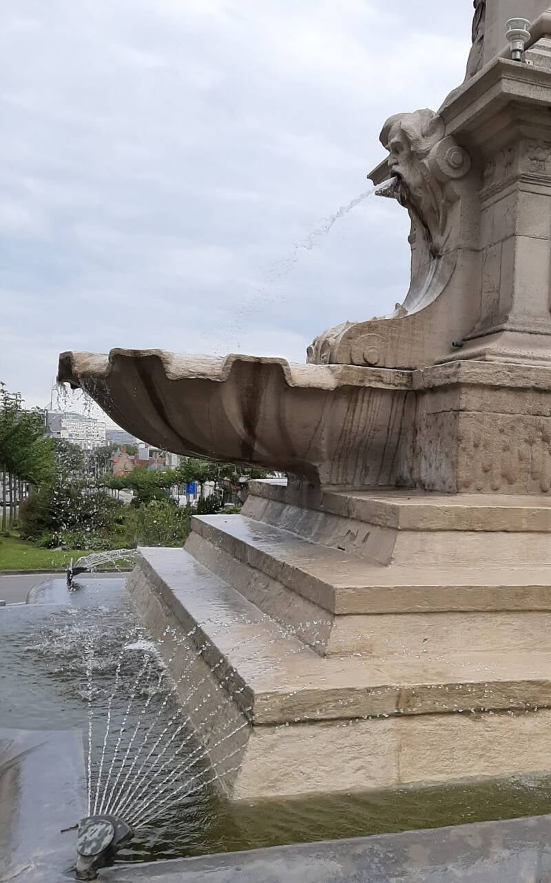 De fontein op de middenberm van de Charles de dateert van 1898 en brengt hulde aan de liberale burgemeester Charles De Kerchove, die van 1857 tot 1882 de stad bestuurde. Zijn borstbeeld prijkt aan de kant van de Kortrijksesteenweg. De vier koppen duiden op de vier stromen: Schelde, Leie, Lieve en Rietgracht. De drie maagden staan voor onderwijs, industrie en schone kunsten. De vrouw op één been bovenaan wijst op onsterfelijkheid en onoverwinnelijkheid.