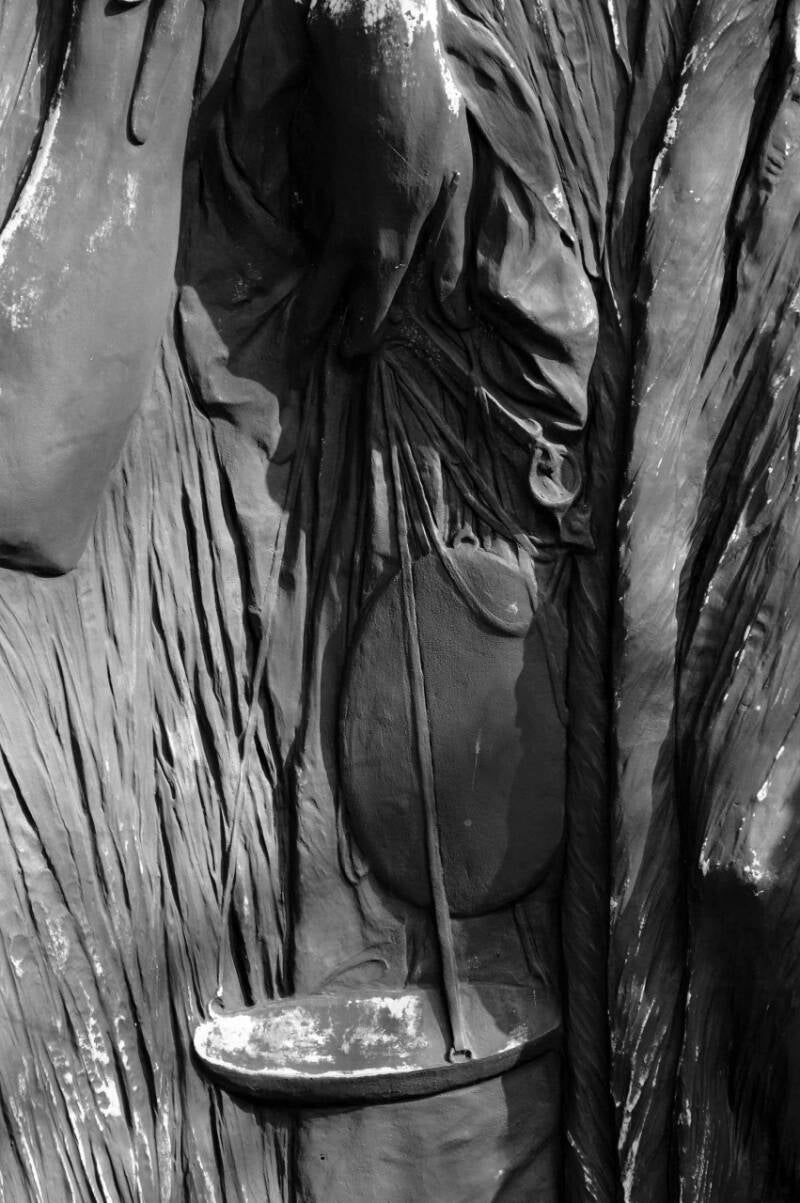 - De Rechtspraak, een vrouw die een balans vasthoudt.