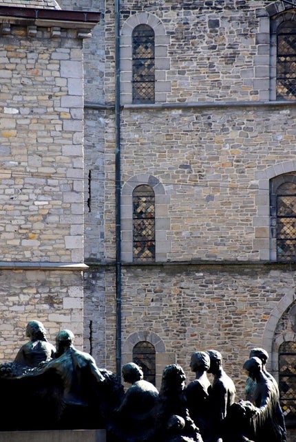 Het geheel werd geplaatst op het Geraard De Duivelhof, een driehoekig pleintje in de directe nabijheid van de Sint-Baafskathedraal. De beeldengroep staat met de rug naar de Vijdkapel, waar Het Lam Gods oorspronkelijk hing.
