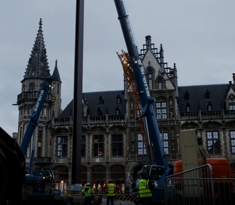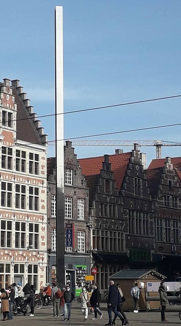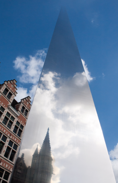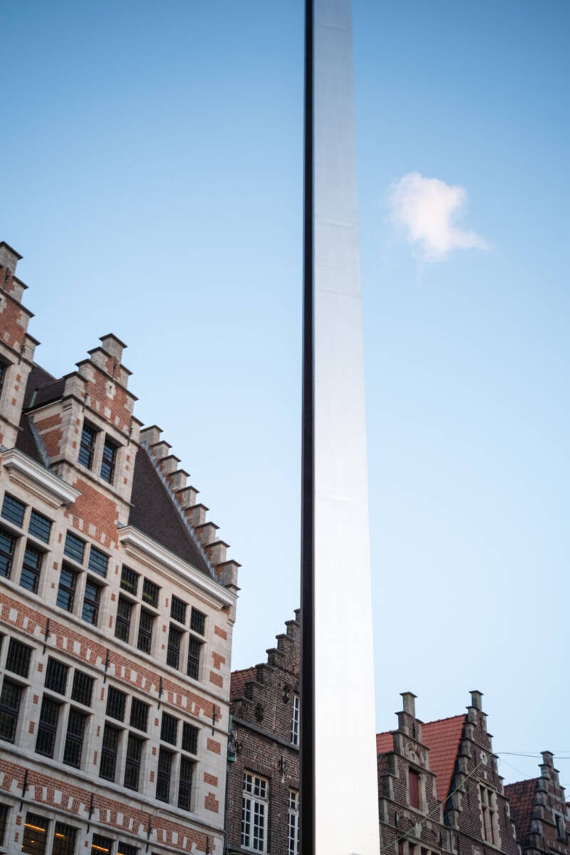 Het ontwerp van Ann Veronica Janssens bestaat uit een gigantische stalen balk van 19 meter hoog met één gepolijste zijde, die de sculptuur een immaterieel aspect geeft. Er ontstaat rond het werk een spel van licht en schaduw. De schaduw van de balk en de reflectie van de spiegelzijde draaien op hun eigen ritme rond het werk. Het lijkt alsof ze elkaar nooit te pakken kunnen krijgen in dit kat-en-muisspel, maar dat is niet zo. Elk jaar op 1 mei precies om 16 uur liggen de schaduw en de reflectie exact in elkaars verlengde. De spiegelzijde neemt de omgeving en de hemel op in de sculptuur en breekt zo het stadsbeeld open.