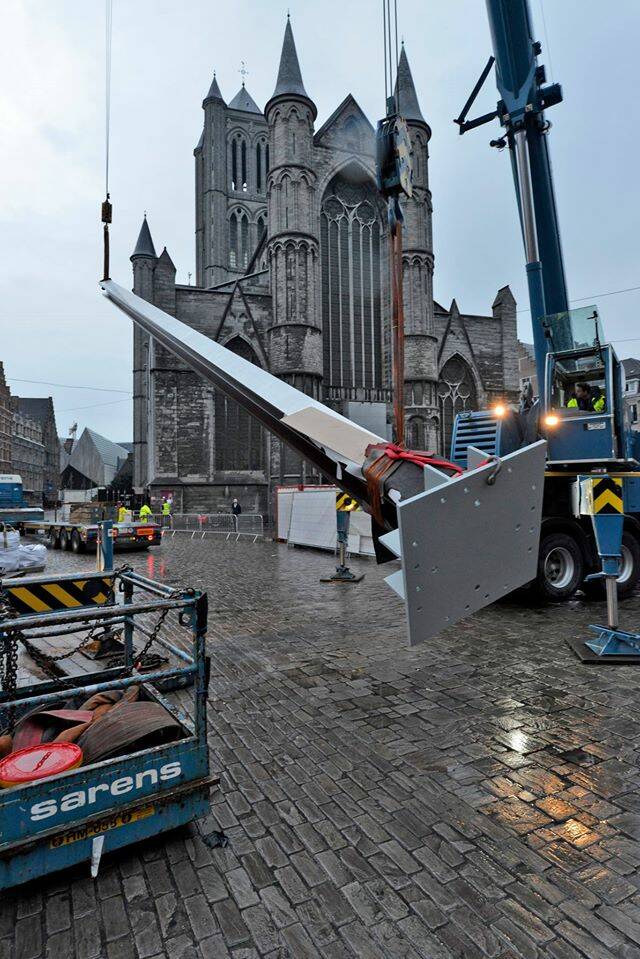 et andere werk HD 400 is 19 meter hoog, maar veel zwaarder. Het weegt 14,6 ton. In de fundering is 53 ton beton gegoten, om het kunstwerk veilig te kunnen plaatsen. Het gaat om een balk van één stuk uit gerecycleerd staal, dat gesponsord werd door het bedrijf ArcelorMittal. De naam 'HD 400' is een verwijzing naar een profiel van stalen balken.
