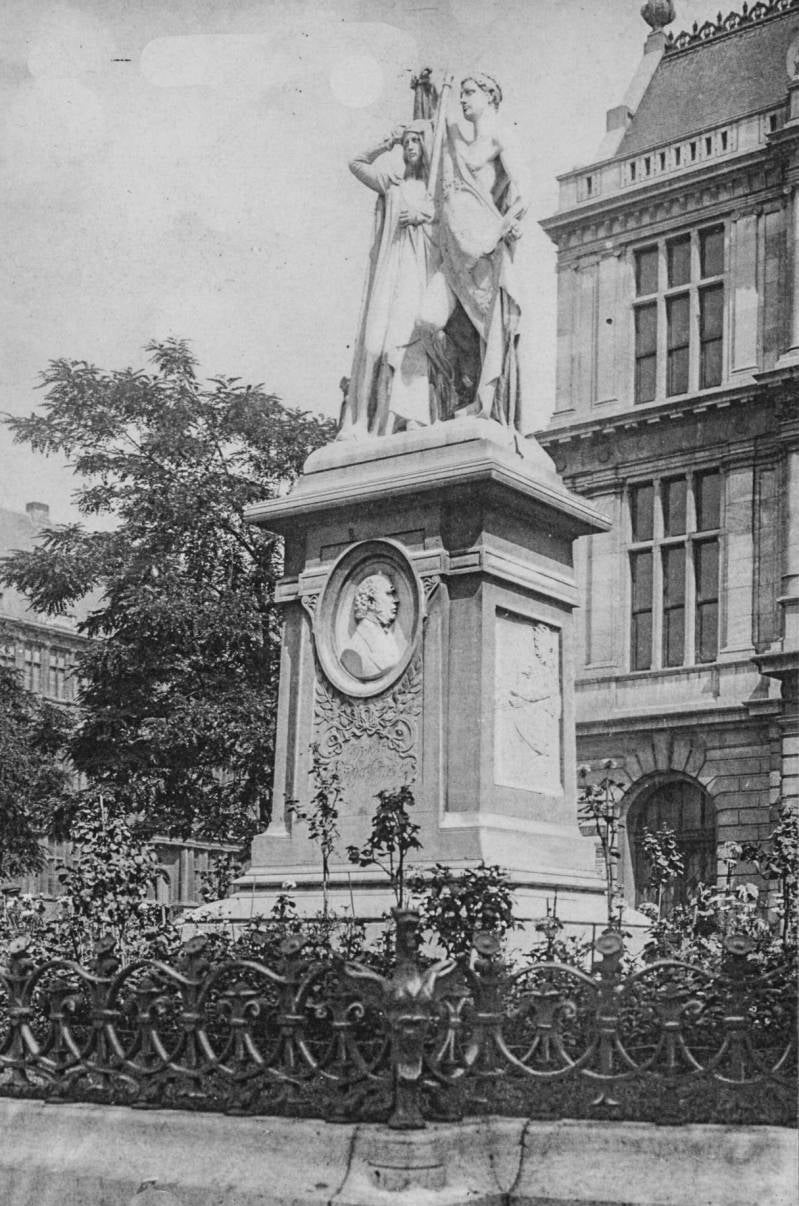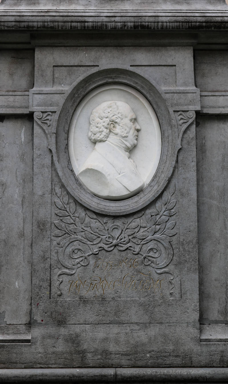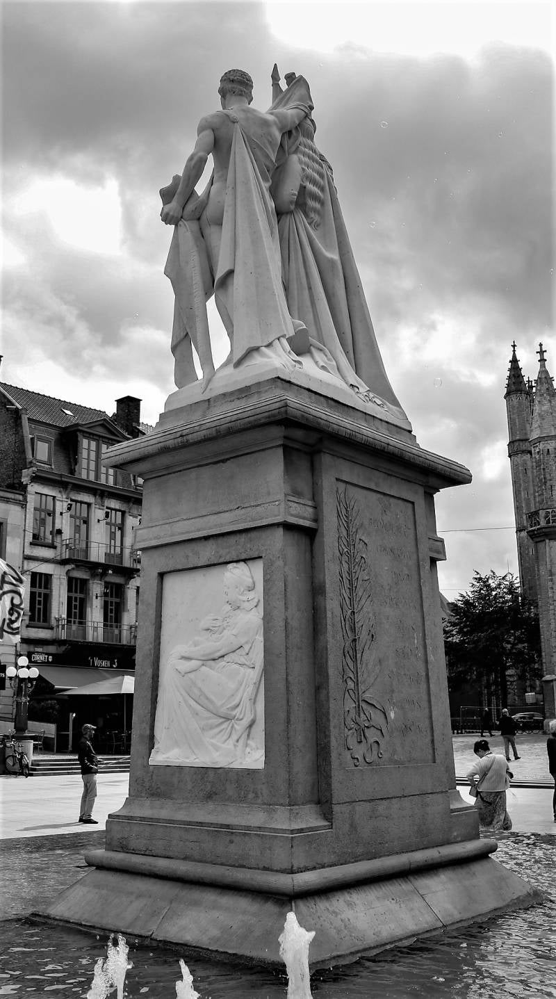 Gedenkteken gewijd aan Jan Frans Willems (1798-1846), gebeeldhouwd door Isidoor De Rudder en ingehuldigd in 1899: granieten voetstuk met in reliëf een borstbeeld van J.F. Willems, voorstellingen van zijn voornaamste werken en vermelding van zijn medewerkers. Op het voetstuk prijkt een groep van wit marmer, als zinnebeeld van het ontwakend Vlaanderen: een jongeling die de Vlaamse genius symboliseert, wekt een maagd die Vlaanderen voorstelt.