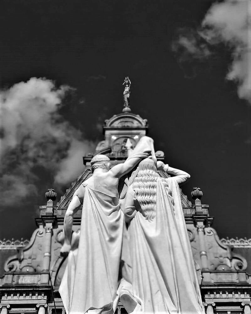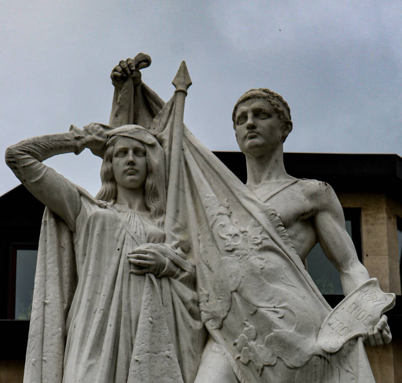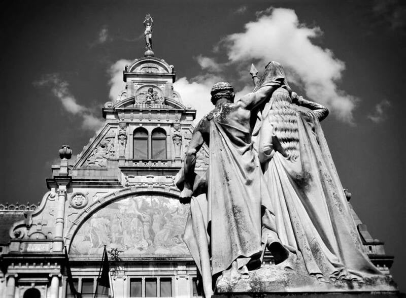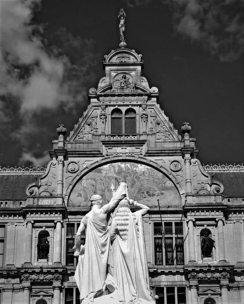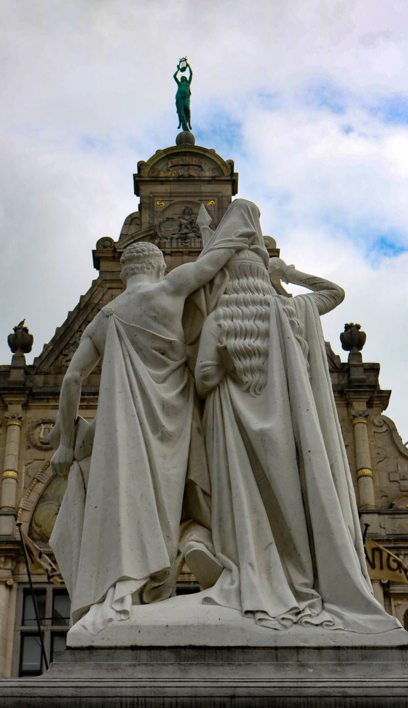 Gedenkteken gewijd aan Jan Frans Willems (1798-1846), gebeeldhouwd door Isidoor De Rudder en ingehuldigd in 1899: granieten voetstuk met in reliëf een borstbeeld van J.F. Willems, voorstellingen van zijn voornaamste werken en vermelding van zijn medewerkers. Op het voetstuk prijkt een groep van wit marmer, als zinnebeeld van het ontwakend Vlaanderen: een jongeling die de Vlaamse genius symboliseert, wekt een maagd die Vlaanderen voorstelt.