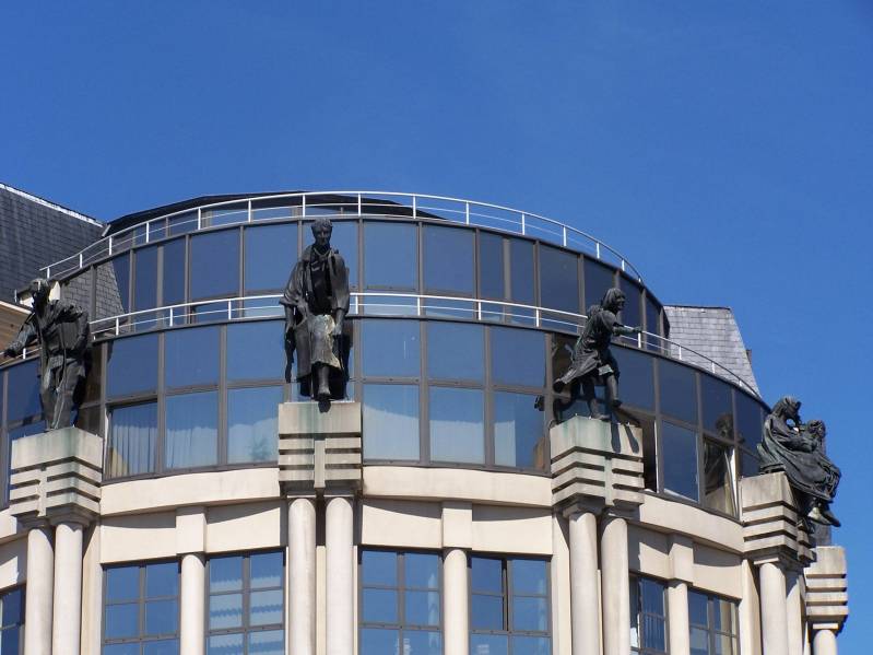 Het gebouw dateert van 1994.De bronzen beelden zijn tussen de 3,5 tot 4 meter hoog.
