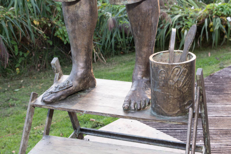 Het naamkaartje aan de teen van het beeld is een verwijzing naar het naamkaartje dat bij overledenen wordt omgeknoopt in het mortuarium en een cynische knipoog naar de artistieke dood van een kunstenaar die denkt de pracht van de natuur te kunnen evenaren in zijn eigen kunst. Een poëtisch beeld op een passend idyllisch plekje. Het is een poëtisch beeld dat stemt tot nadenken over de grenzen van het kunstenaarschap. Het werk stelt een kunstenaar voor in zijn poging zich de onvatbare schoonheid van de natuur toe te eigen door te doen alsof hij de ondergaande zon schildert. Het verbeeldt de onmacht van een artiest om ooit de overweldigende natuurpracht te kunnen evenaren in eigen kunst en de artistieke dood die wordt ingeluid bij kunstenaren die dit toch proberen. Dit wordt gesymboliseerd door het naamkaartje aan de teen van de artiest, zoals bij de overledenen in het mortuarium wordt omgeknoopt.