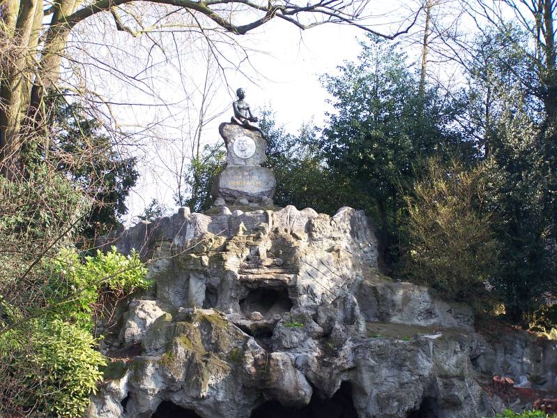 Het gedenkteken “Het Moorken” stond oorspronkelijke op een voorlopige plaats tussen de grote vijver en de normaalschool. Op 17 februari 1902 werd het daar weggenomen en geplaatst op de top van de rots aan de kleine vijver in plaats van de duiventil. Aan de voet van het oorspronkelijke monument lagen verscheidene bronzen voorwerpen: o.a. een schild met 2 speren, een landkaart en 2 kruiken. Deze werden weinige tijd later reeds gestolen.